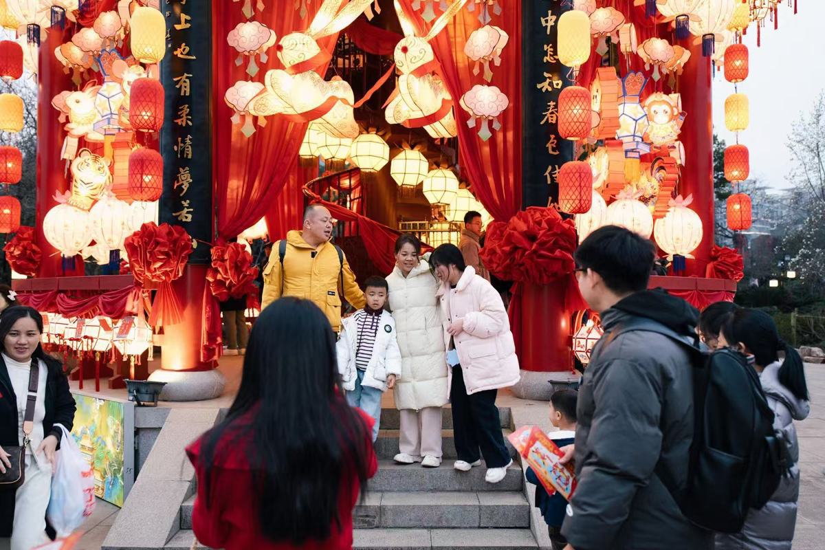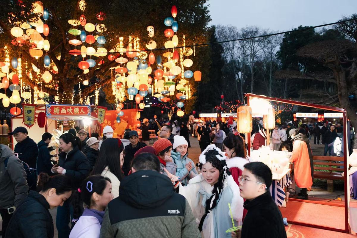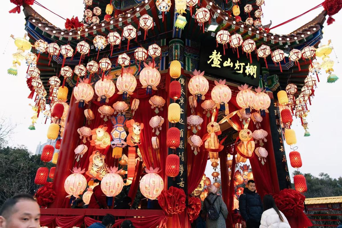 “听说东湖牡丹园有千灯游园会,今天特意带家人过来,白天逛市集、玩游戏,晚上看灯展,大人小孩都玩得特别开心。”武汉市民张先生一边帮孩子整理刚领到的糖画,一边笑着说道,“尤其是《鳌山灯棚》,不仅好看,还能让孩子了解到古代灯彩文化,这种有内涵又有趣的活动,特别适合全家出游。”带着老人和孩子从孝感赶来的林女士,手里举着刚拍的灯组照片,连连称赞:“过年就是要感受这样的中国年俗,非遗灯彩特别震撼,楚风国潮的氛围也很浓,孩子一边玩一边了解荆楚文化,这趟武汉之行太值了。”