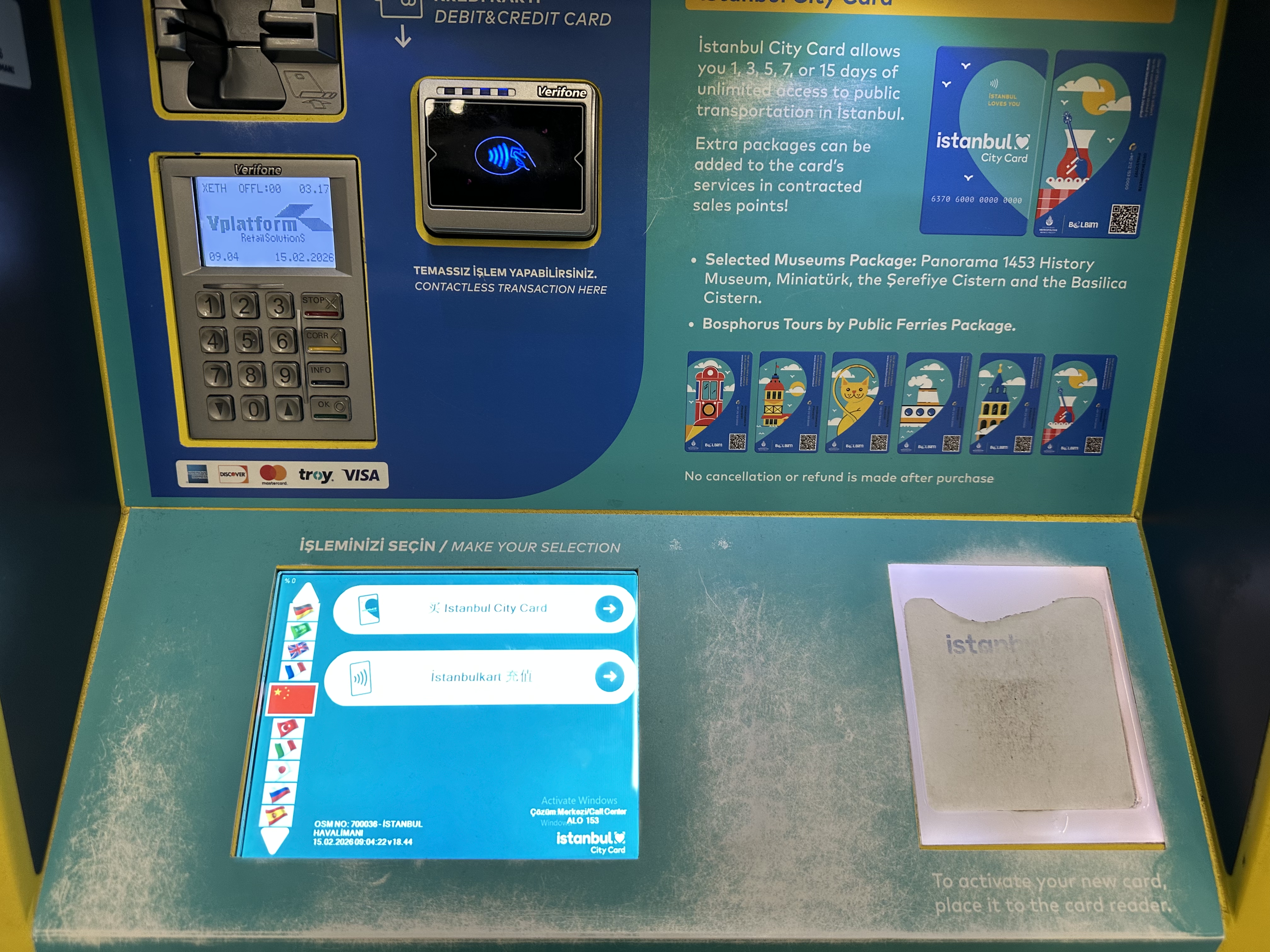 抵达伊斯坦布尔后,当地的地铁和公交等设施非常发达,购买交通卡就可以乘坐,一些主要的景点和城市中心地区都可到达。但其他城市的公共交通不一定如此便捷,比如卡帕多奇亚的公共交通就不多。让记者感到暖心的是,在伊斯坦布尔的交通卡自助机器上有中文版导购,在出机场时,也有中文“新年快乐”的欢迎字样,对中国游客很是友好。