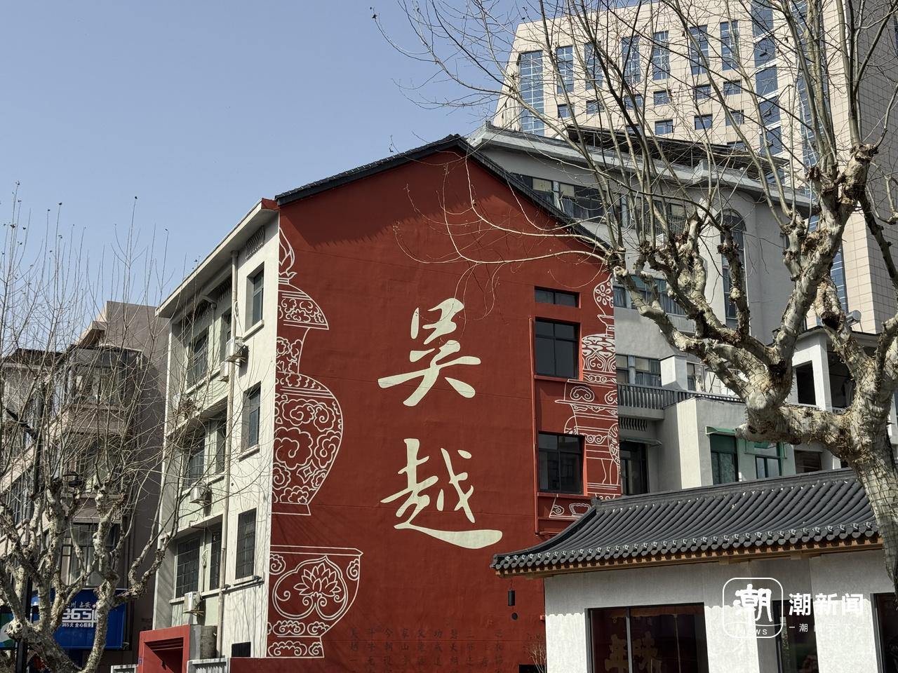 其中,衣锦街的吴越文化浓度直接拉满。一条衣锦街,藏着半部吴越史。走在这里,不时能看到游客对着墙上“衣锦还乡”“吴越”等大字打卡拍照。
