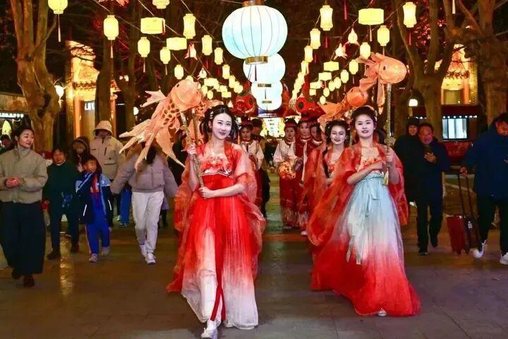 春节期间,全市还策划推出81项文旅活动和优惠政策,涵盖“看泰安好风景、听泰山好声音、吃地道好美味、追时尚好玩法、品齐鲁好古韵”五大主题及“景区特惠畅玩、住宿优享礼遇、交旅福利暖心”三大类别,带动全域旅游多点开花。历时四个月精雕细琢的大宋不夜城全面焕新升级,打造108个互动沉浸式打卡点、“1+5+N”演绎矩阵,2月15日开城以来游客消费大幅攀升。泰山石敢当景区推出“万福中国年暨2026春节灯会”,百名NPC沉浸式互动,各类演艺轮番上演。徂徕山森林温泉康养度假谷打造暖冬康养特色游览场景,成为康养休闲热门聚集地。宝盛道谷等7家星级酒店推出“住宿+餐饮”特惠套餐等多重礼遇,掀起消费热潮。