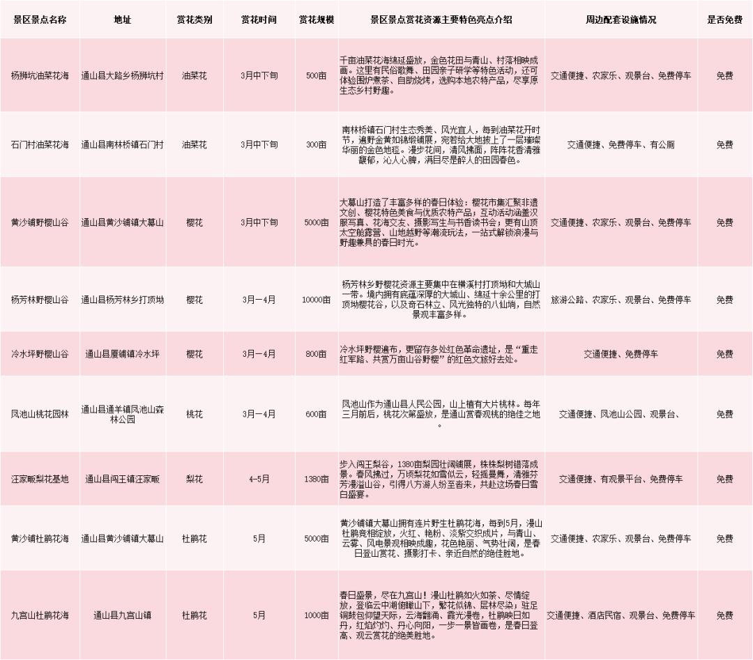 野樱花、油菜花、杜鹃花等缤纷花种竞相绽放