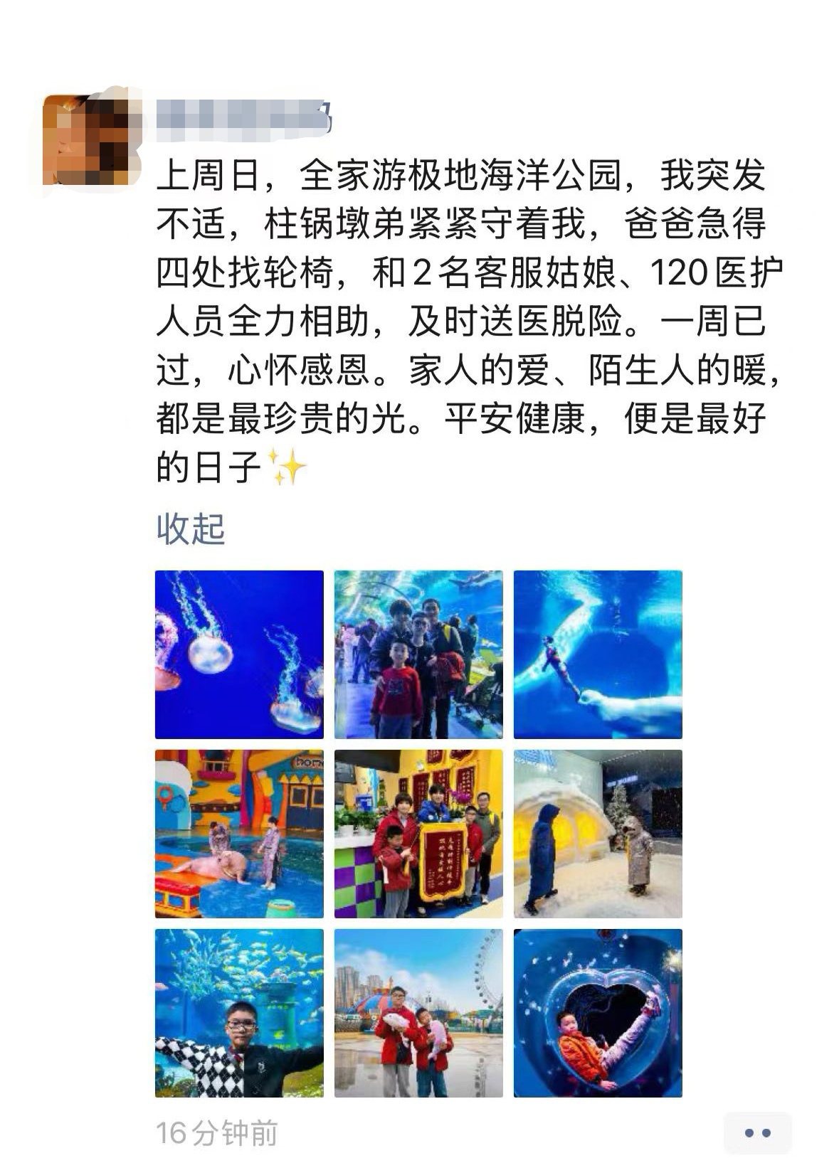 这段被守护、被温暖的经历,徐女士一直记在心头。她身体康复后,特意带着丈夫和孩子,再次来到武汉极地,将写有“危难时刻伸援手,极地有爱暖人心”的锦旗,亲自送到工作人员手中。她还拍摄制作了视频,分享到了朋友圈。一次紧急救助,一面感恩锦旗,一场温暖的双向奔赴,被徐女士用镜头定格、用朋友圈传递,成为武汉春日里的动人风景。