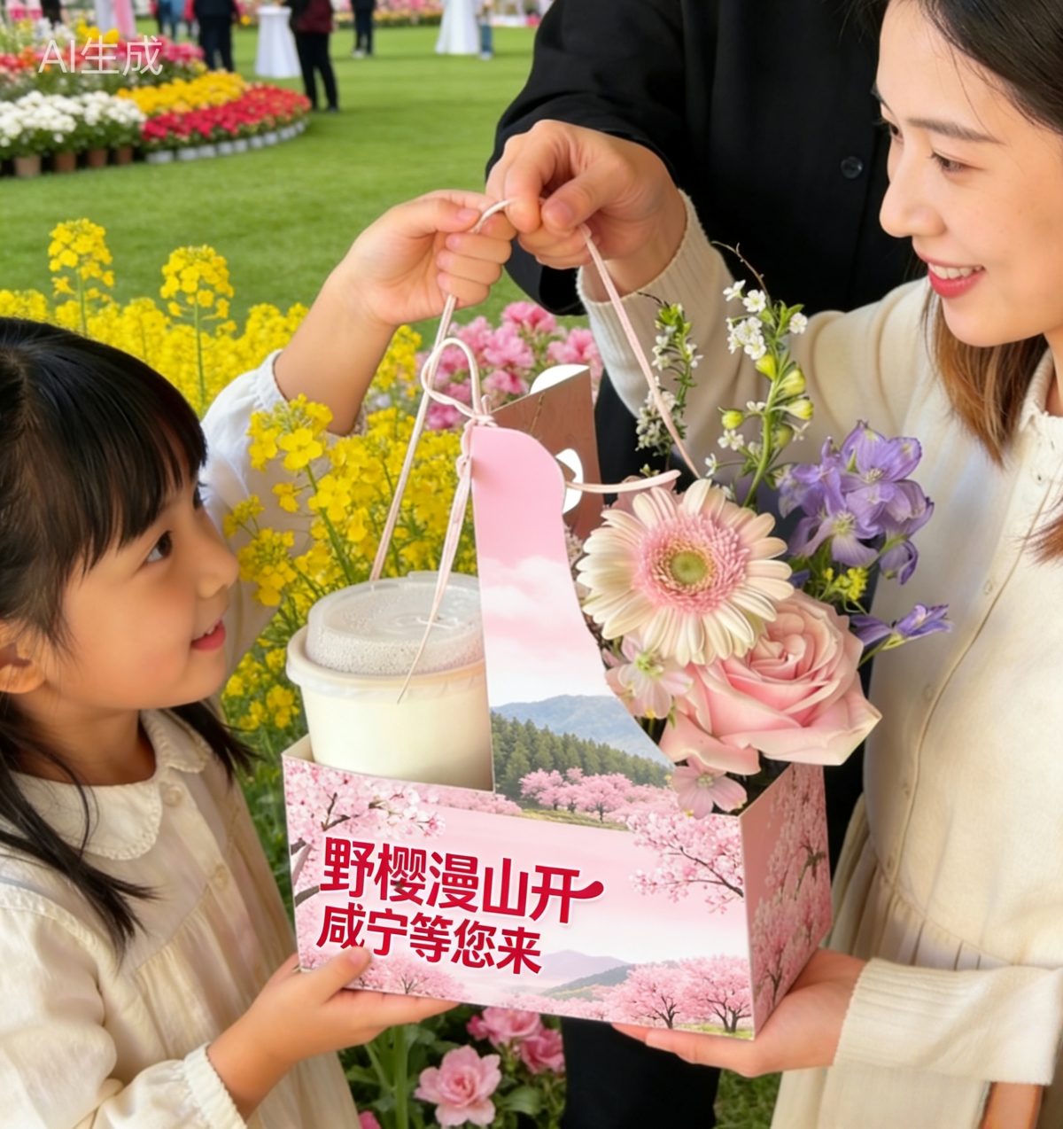 花漾市集,沉浸体验。现场特设“花漾市集”,分设文旅特产与知音手作两大区域。游客既可选购咸宁桂花系列、赤壁青砖茶等本土风物,将咸宁味道带回家;也可参与插花配咖啡、香囊DIY等趣味手作,在花香与巧思中感受春日闲情(前五十名游客可免费参与其中一项)。开园当天更有鲜花赠送(限100名游客),让游客在互动中沉浸式感受咸宁的春日韵味。