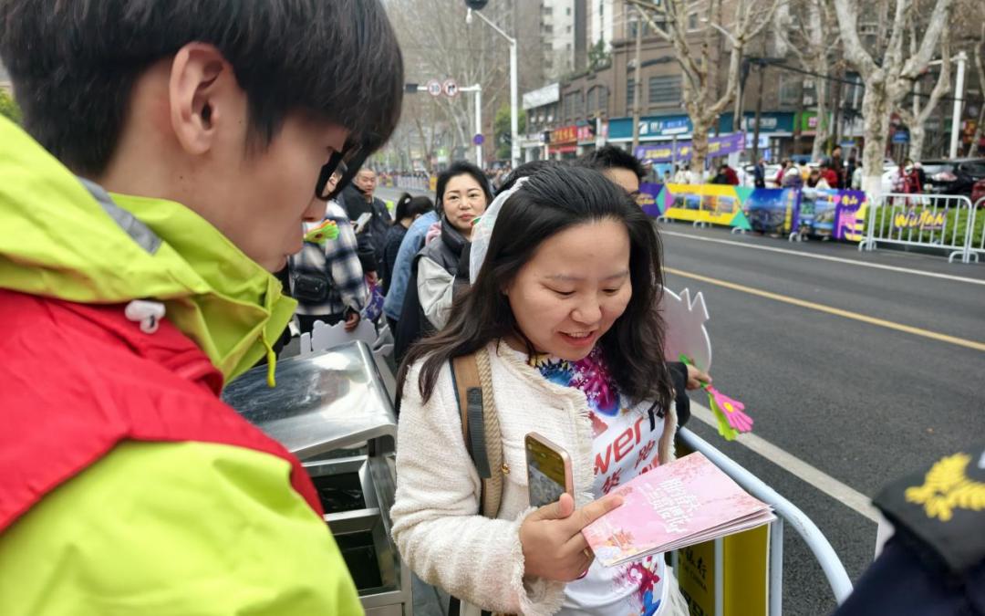 “您好,这是武汉的赏樱地图,赛后可以去这些地方逛逛,正是樱花最美的时候。”志愿者刘涛在赛道旁为观赛人群提供服务时,看到游客李女士正举着手机不停眺望赛道,脸上满是期待。
