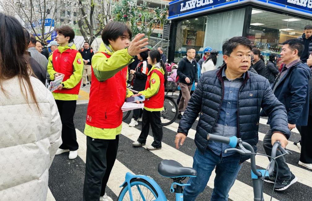 作为赛道旁的“活导航”与“摄影师”,志愿者徐涛的身边总是围着不少前来咨询的市民游客。“您好,请问去地铁站怎么走?”“麻烦能帮我们拍张和赛道的合影吗?”面对接连不断的问题和请求,徐涛始终热情满满,耐心细致地为游客指路。遇到想要拍照留念的游客,他更是主动接过手机,一遍遍调整角度、寻找最佳取景地,力求为大家拍出满意的照片,一张张定格着赛场欢乐与春日美景的照片,背后是他毫无保留的热情与付出。