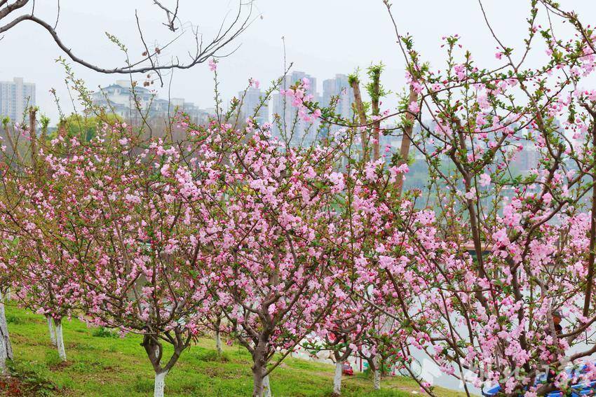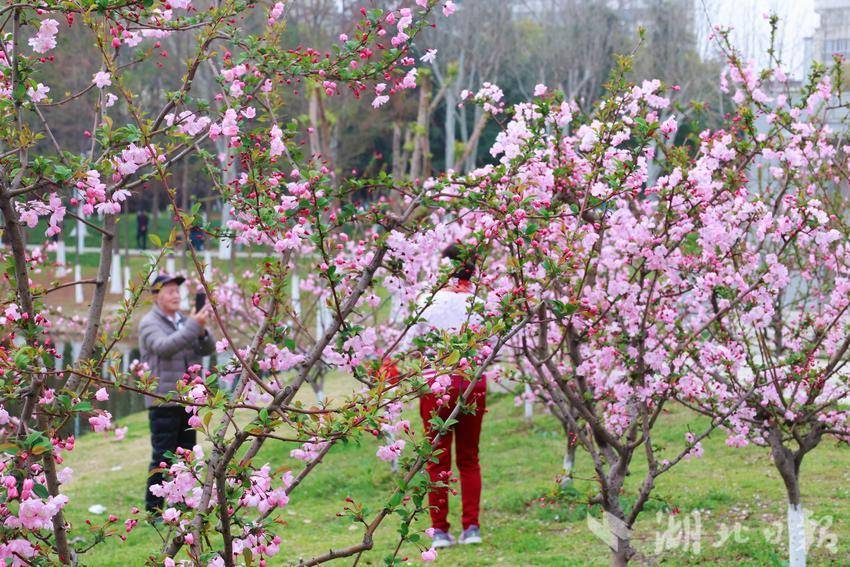 湖北日报客户端讯(通讯员方小齐、赵莹莹、邓洲)春风送暖,武汉洪山的春日画卷正徐徐展开。连日来,关山公园、杨春湖公园、南湖幸福湾公园、团结公园、张家湾人民公园等辖区公园内的垂丝海棠竞相绽放,成为城市中一道靓丽的风景线,吸引着市民游客前来观赏、打卡,共赴一场春日“盛宴”。