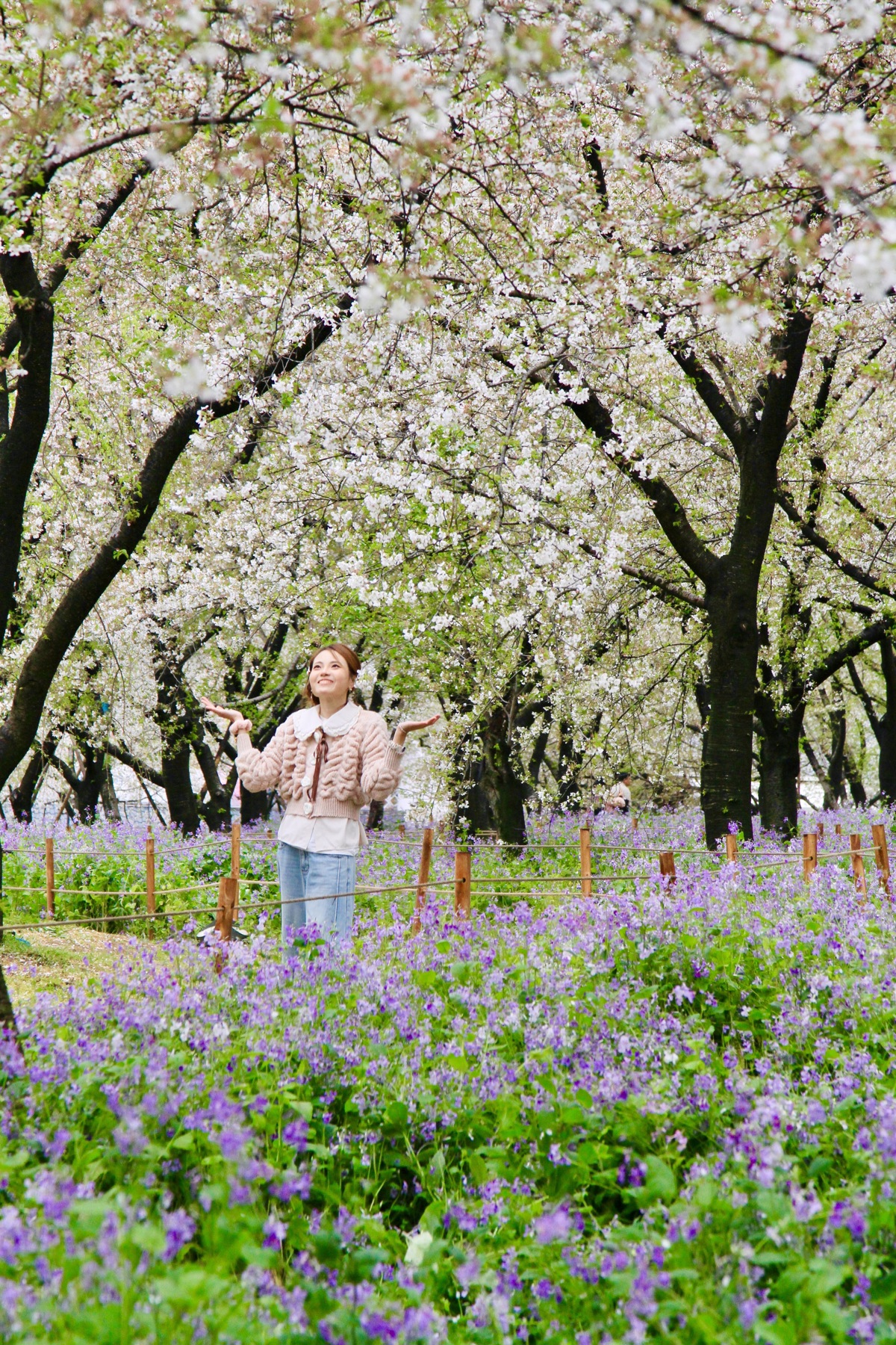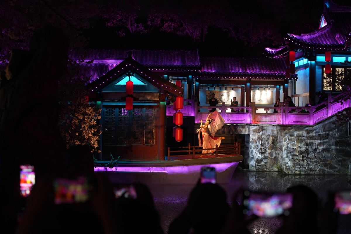 漫步樱园,落英铺径、繁花满枝,游客或驻足拍照、或漫步花间,尽享春日盛景。景区持续优化服务,每日7时至22时开放,打造“日赏繁花、夜观灯影”的全时段赏樱体验,配套国风演艺、文创市集等活动,让游客沉浸式感受东湖樱韵之美。