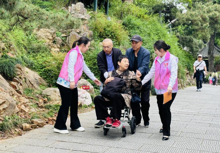 志愿者们发现几位老年游客推着轮椅在坡道前徘徊不前,立刻热情迎上去。“大爷,您慢点,我们来帮您。”她们帮助游客将轮椅推上坡道,一路细心照看。游客感动地说:“你们真是太贴心了!” 志愿者们笑着回应:“这是我们应该做的,您慢慢游览,有任何需要随时叫我们。”