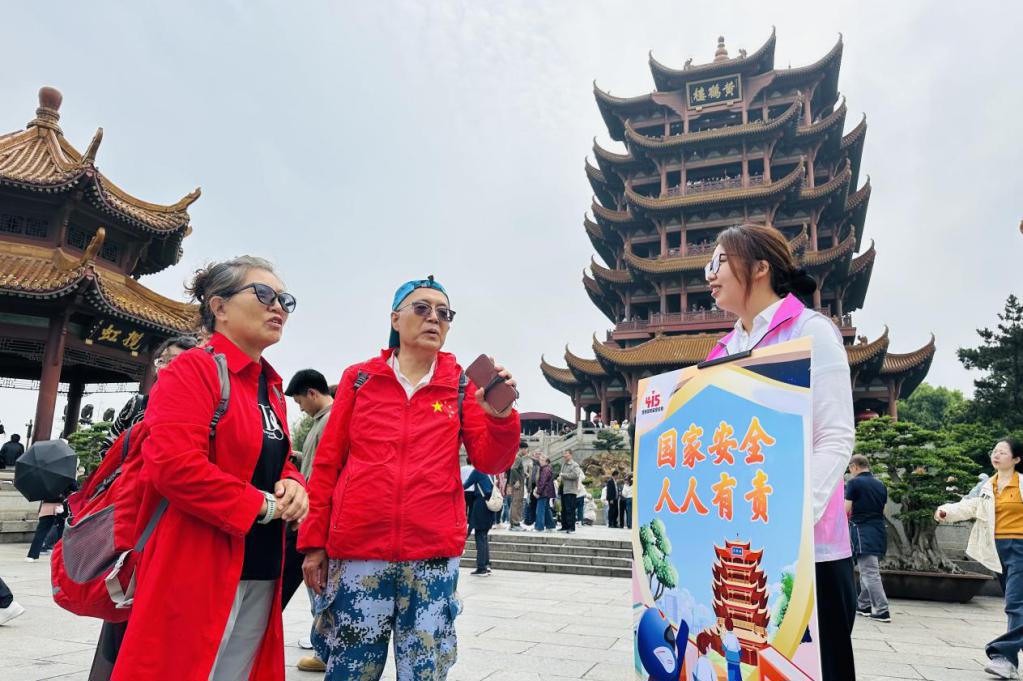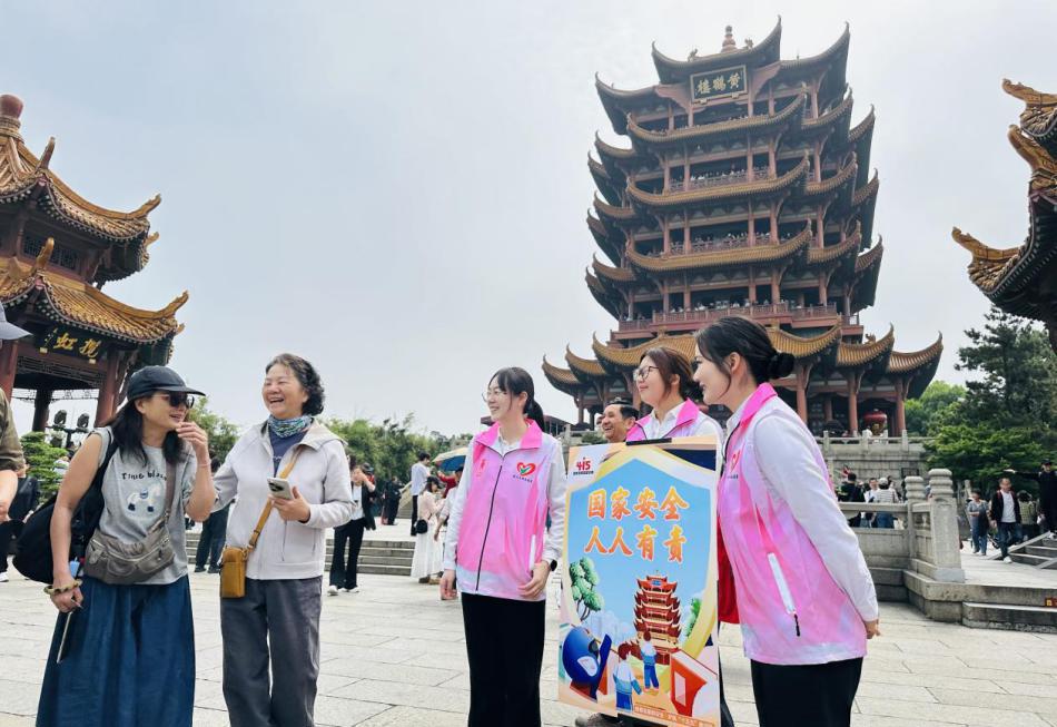 2026年4月15日是第十一个全民国家安全教育日,连日来,武汉文旅志愿者黄鹤楼分队走进黄鹤楼公园,开展主题为“统筹发展和安全 护航‘十五五’新征程”的文旅志愿服务。她们以专业素养和热情服务迎接八方来客,展现了武汉文旅的独特风采,也让国家安全教育走进景区、贴近群众。