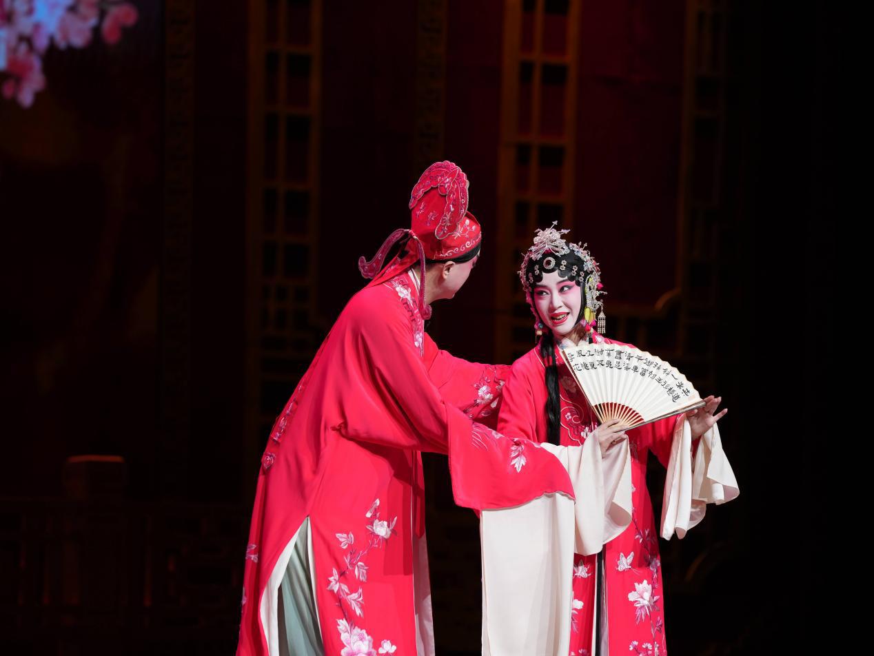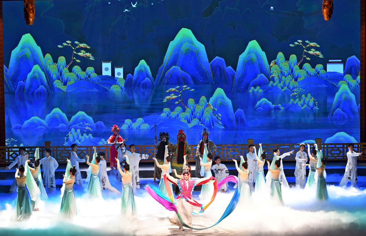 本场演出以开场舞《戏韵芬芳》唯美启幕,用灵动舞姿勾勒戏曲身段之美,将传统程式与现代舞蹈相融,瞬间营造出浓郁的梨园氛围。随后,南北剧种轮番登场、交相辉映:既有昆曲《桃花扇》的水磨雅韵、黄梅戏《天仙配》的乡音甜润,尽显江南戏曲的婉转灵动;也有豫剧《穆桂英挂帅》的铿锵豪迈、京剧《智取威虎山》的气贯长虹,尽显北方剧种的磅礴气势;更有祁剧《杨门女将·探谷》的武戏张力、徽剧《小宴》的翎子绝技,展现传统戏曲的程式之美;台州乱弹《做媒》的市井烟火、楚剧《万里茶道·提壶邀月》的诗意新编、越剧《打金枝》的宫闱纠葛,则让整台晚会层次丰富、韵味悠长。