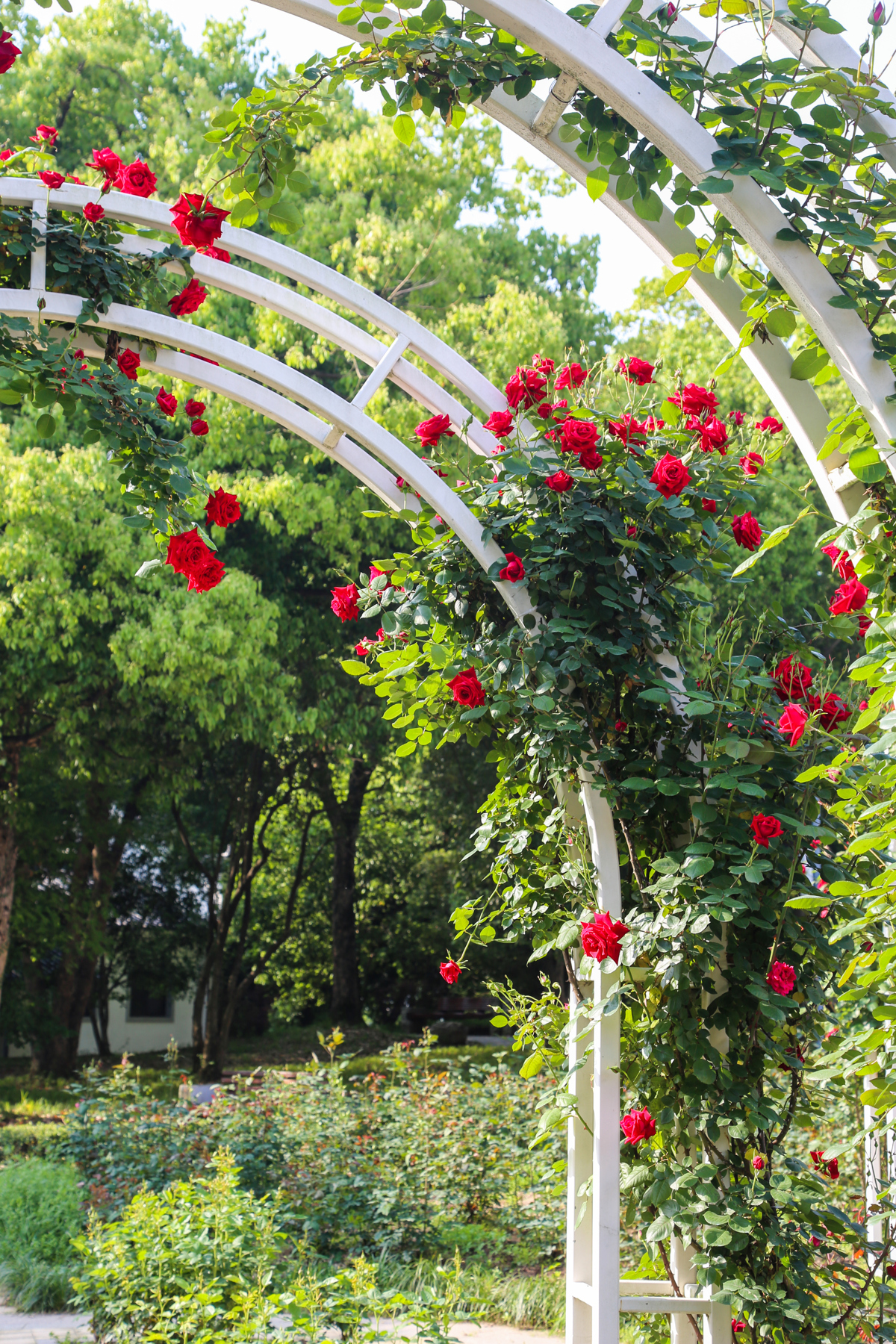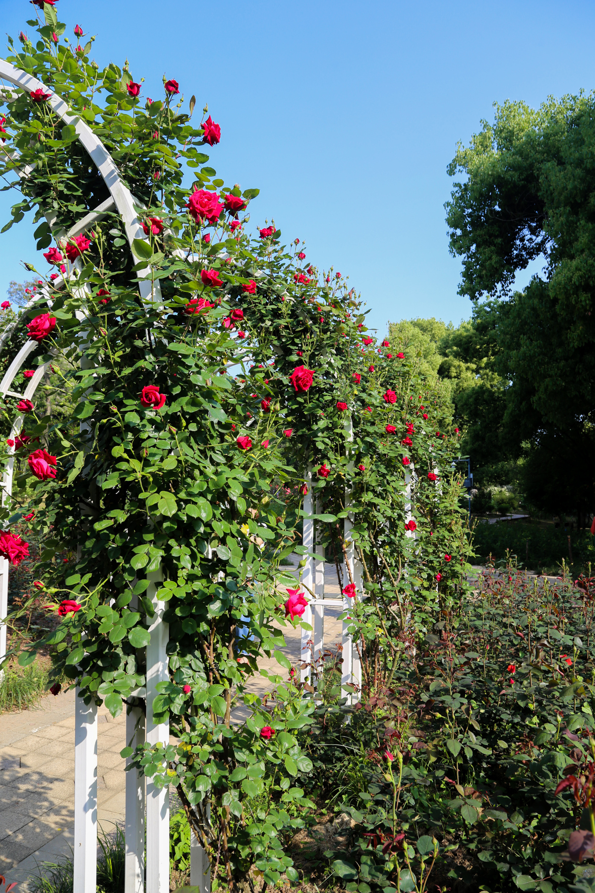 作为湖北首家玫瑰主题精致花园,同时也是东湖片区规模最大的玫瑰园,这片占地12000平方米的“花花世界”自2013年分三期打造完成,多年来精心培育、匠心布局,园内共栽种3万余株玫瑰、月季,涵盖18个优质品种。园区以树形挺拔、花势大气的大型树状月季为核心景观,搭配纯白玫瑰、粉艳玫瑰、大花月季等经典品种,花朵圆润饱满,花瓣层层叠叠、错落有致,色彩鲜亮浓郁、质感高级,无论是近观花姿,还是远赏花海,都极具视觉冲击力,随手定格都是氛围感满满的文艺大片,观赏性拉满。
