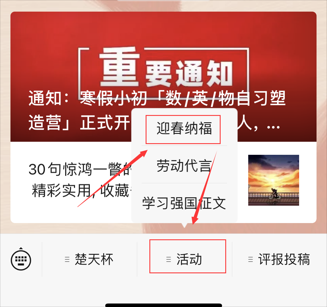☆ 国内读者也可在微信小程序“中国邮政商城”里订阅本报。进入“中国邮政商城”微信小程序——点击“报刊商城”——搜索“帅作文”,选择相应版本即可。