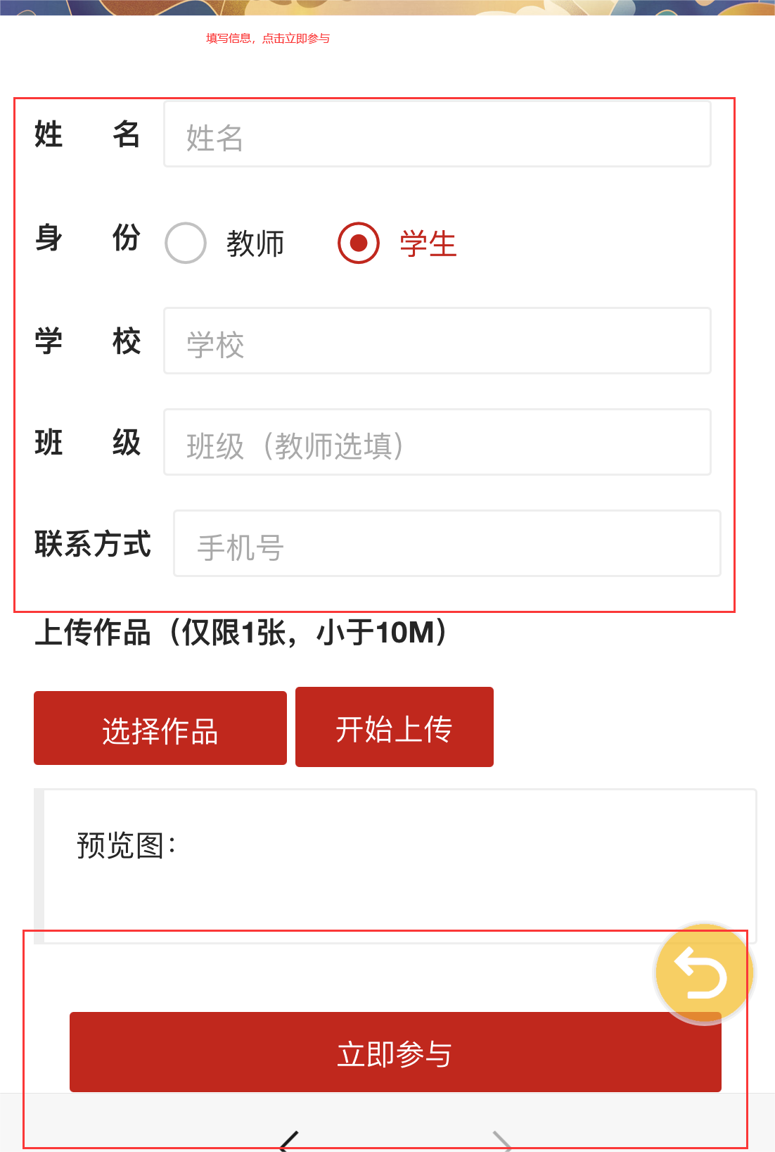 4.按要求填写相关信息,每位参赛者可上传个人作品的电子照片一张,大小不超过5M,提交即可。待工作人员后台审核通过后即可参与传播奖评选。