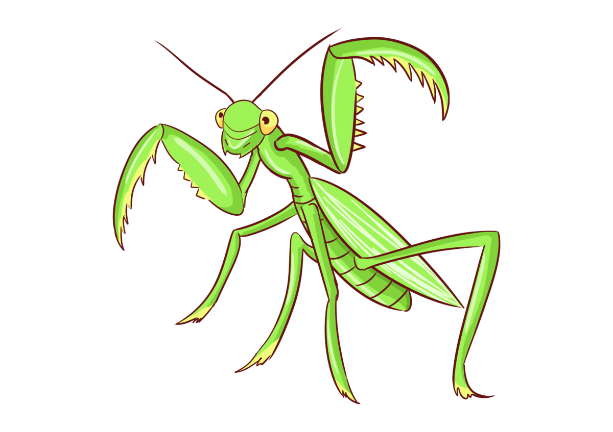 你知道螳螂长什么样子吗?它的两条前腿粗壮有力,还有锋利的锯(jù)齿,想必这是它最厉害的武器。像树叶一样的翅膀下藏着大大的肚子,四条后腿又细又长,支撑(chēng)着整个身体。它的眼睛像玻璃一样充满光泽(zé),头是三角形的,上面竖着两根细细的触角,像玉米的胡须。