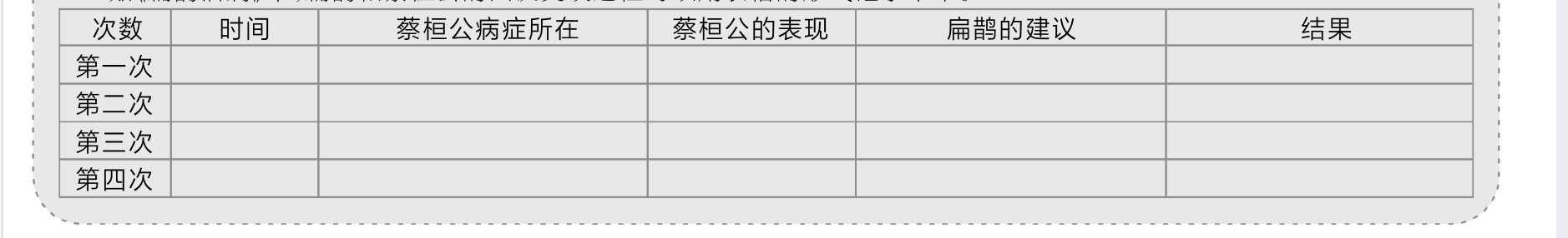 如《扁鹊治病》中,扁鹊和蔡桓公的四次交谈过程可以用表格的形式记录下来。