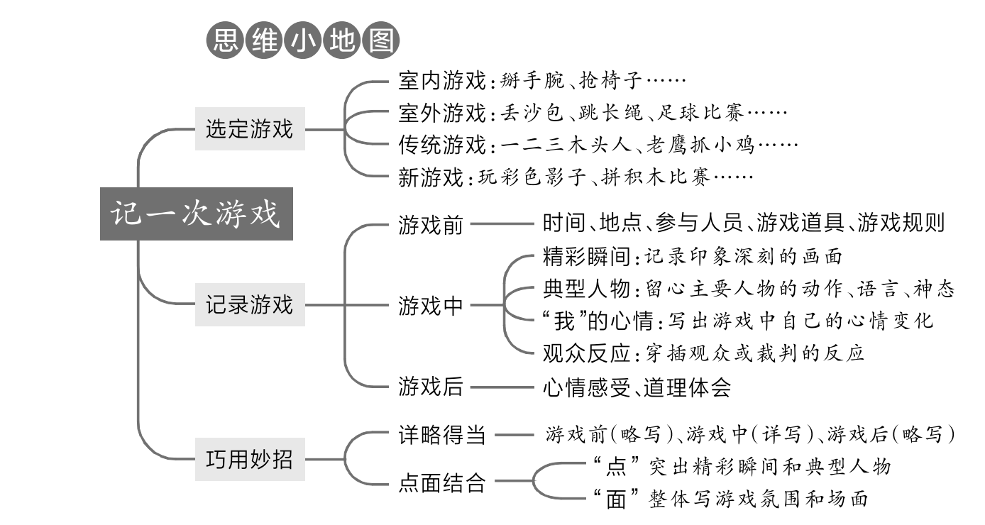 详写游戏过程,突出游戏中最有趣的部分,通过人物的语言、神态、动作和心理的细节描写,使笔下的游戏精彩有趣,让读者有身临其境之感。
