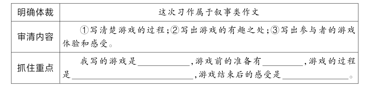 丢沙包、抢椅子、跳长绳、两人三足跑、一二三木头人……游戏可以锻炼我们各方面的能力,可以让我们进入自由自在的快乐天地。今天就让我们来做一做、写一写有趣的游戏。