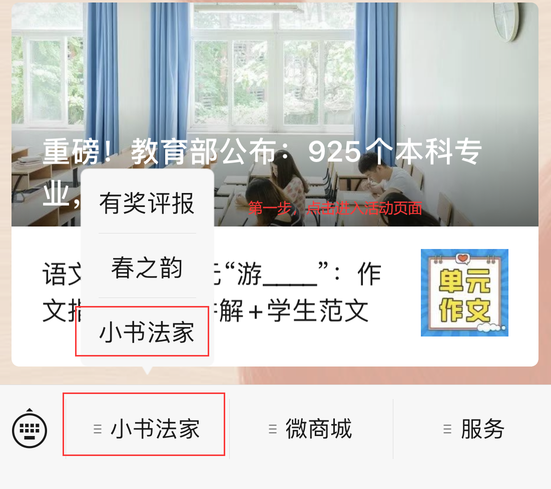 点击底栏“小书法家”,进入“小书法家”活动页面。