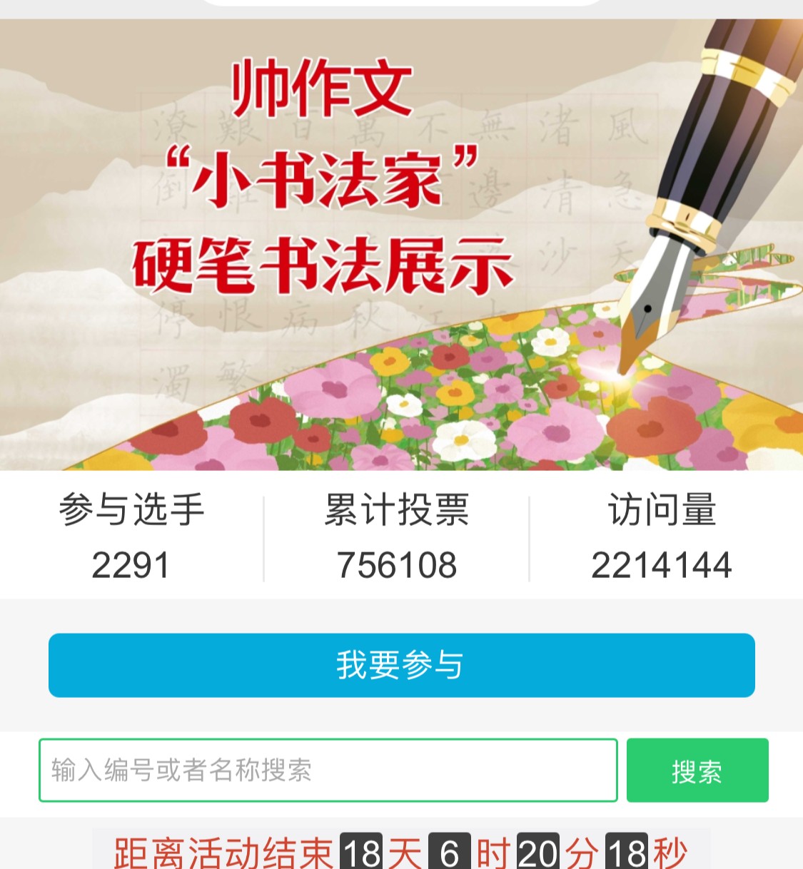在“小书法家”活动页面上方点击“我要参与”。