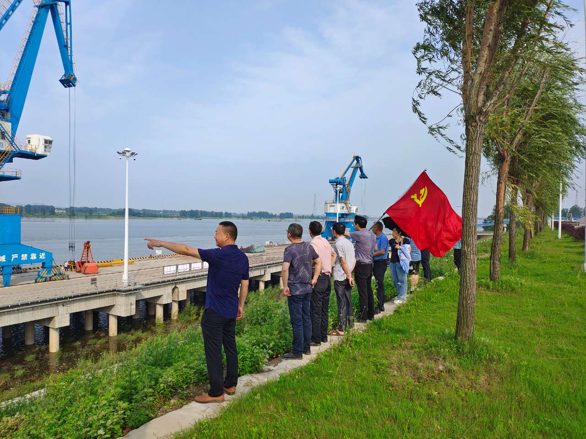 6月12日,宜城市小河中学党支部全体在职党员赴襄阳小河港开展主题党日活动,小河港展区讲解员为前来参观的党员介绍了港口的基本情况和发展现状。