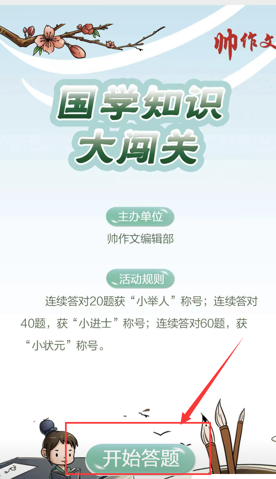 连续答对20题获“小举人”称号;连续答对40题,获“小进士”称号;连续答对60题,获“小状元”称号。