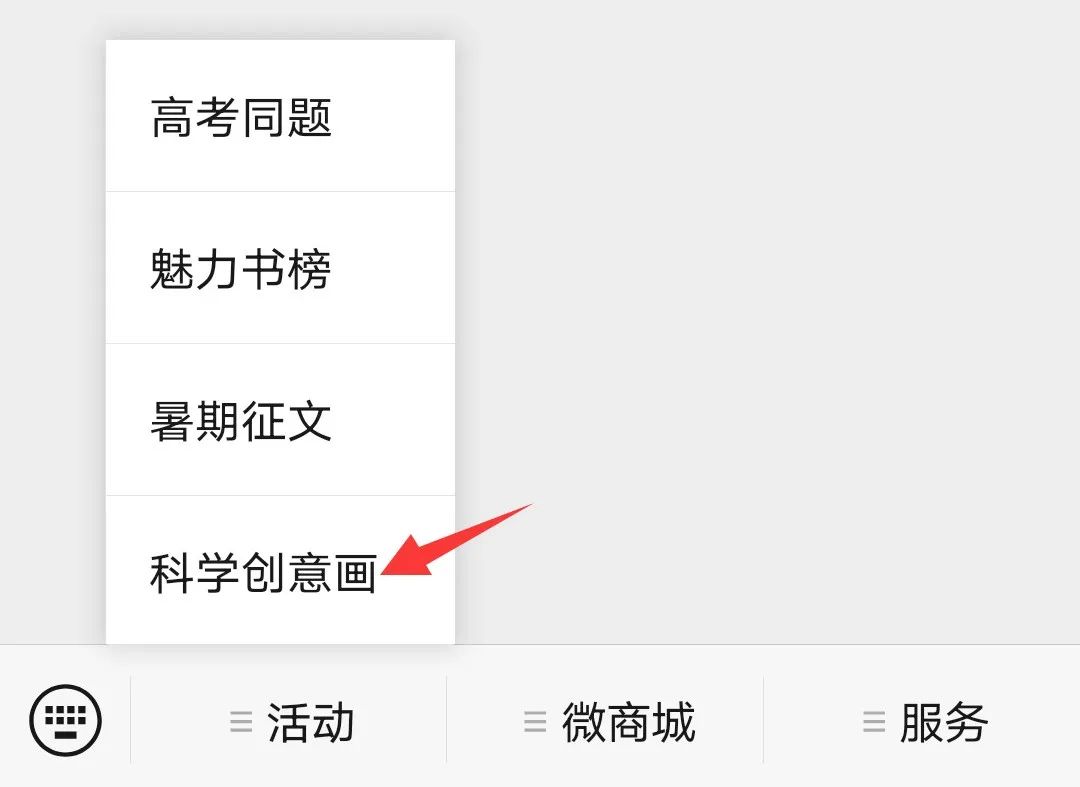 1.扫码进入帅作文公众号,点击底栏“活动—科学创意画”