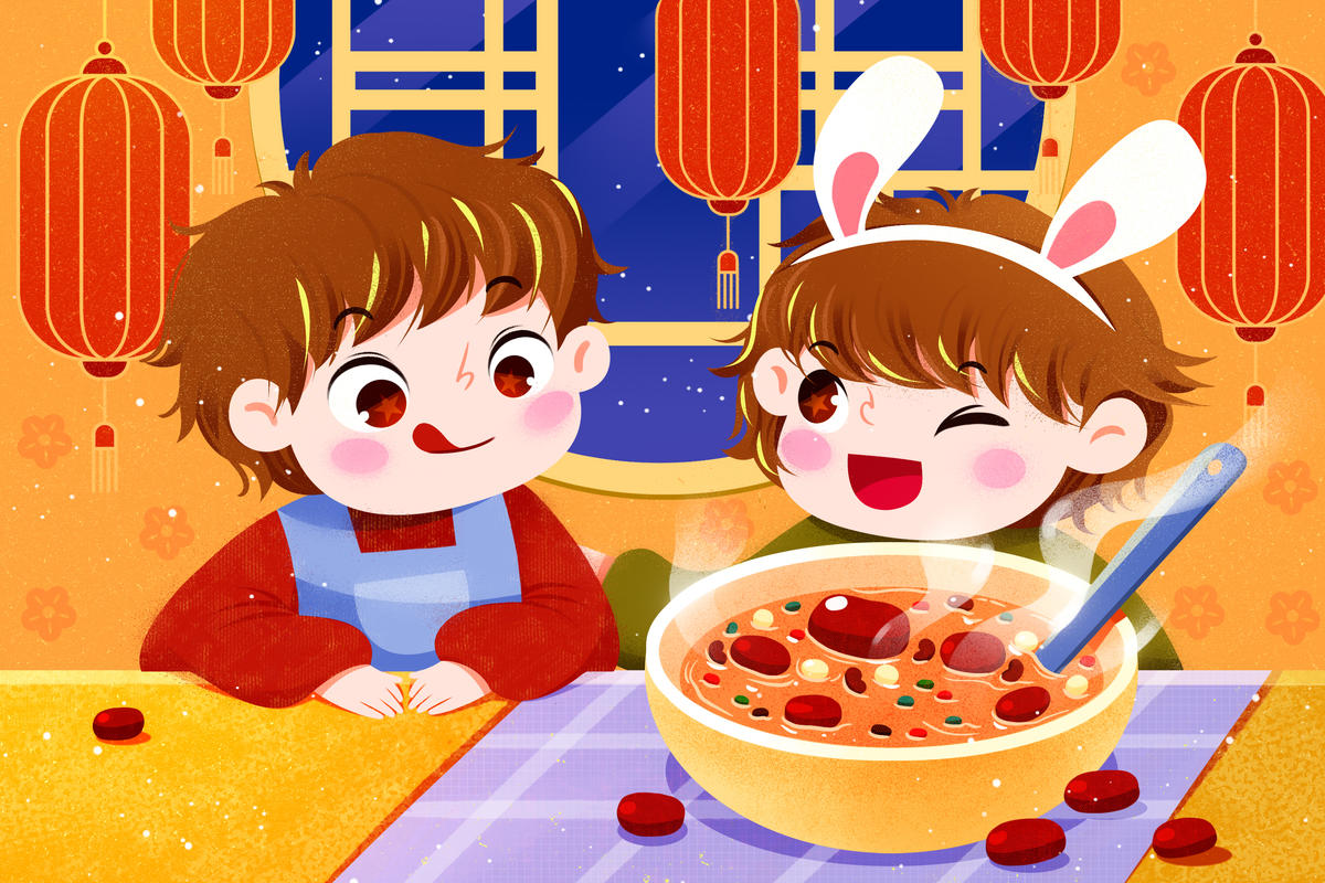 (点评:运用心理描写,通过八儿对腊八粥美妙的猜想,反映出八儿对腊八粥的美好向往,进一步写出了他想喝到腊八粥的急切心理。)
