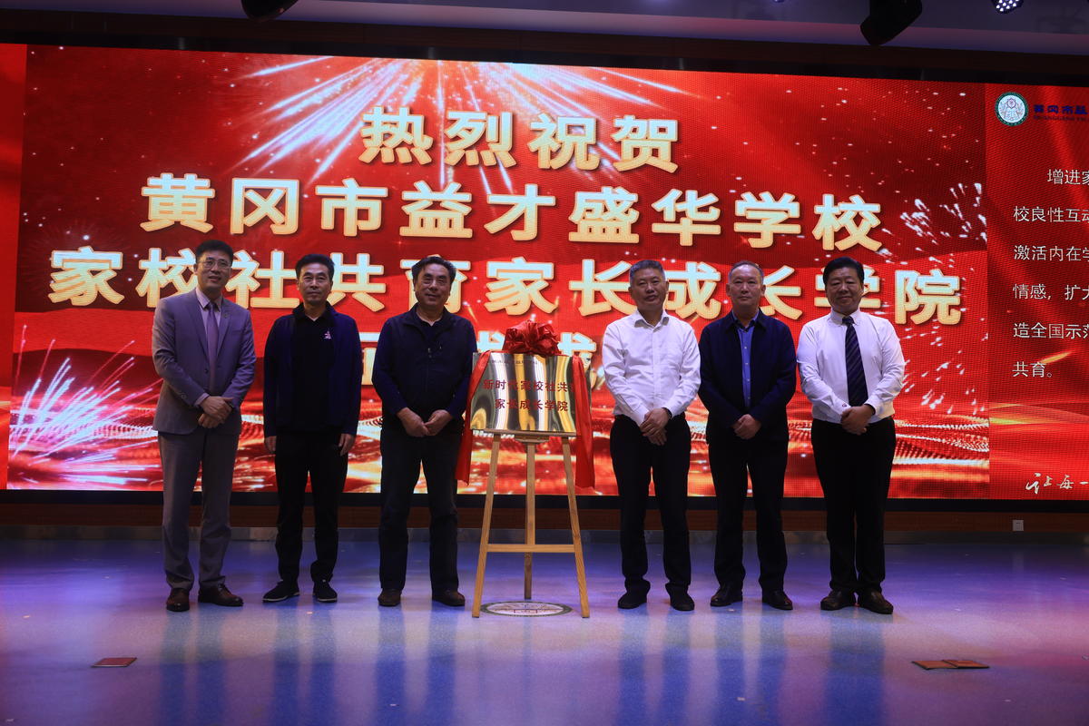 致辞之后,王校长宣布“黄冈市益才盛华学校新时代家校社共育家长成长学院”成立。