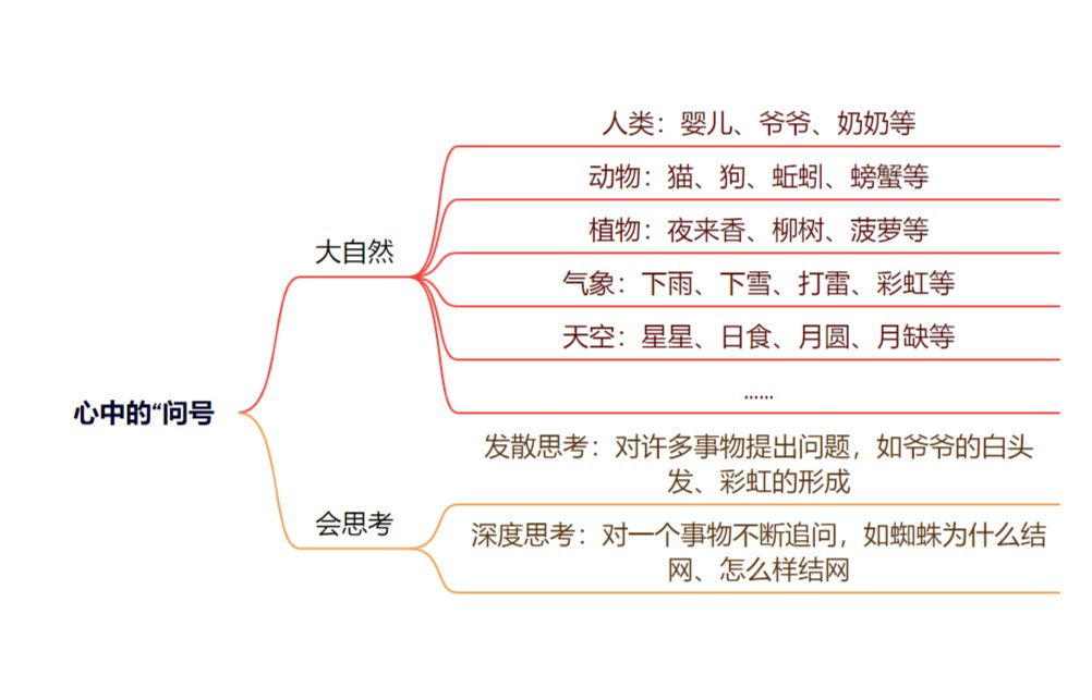 回忆身边的事物,并围绕它提出问题。同学们可以参考以下思维导图,一起来思考!