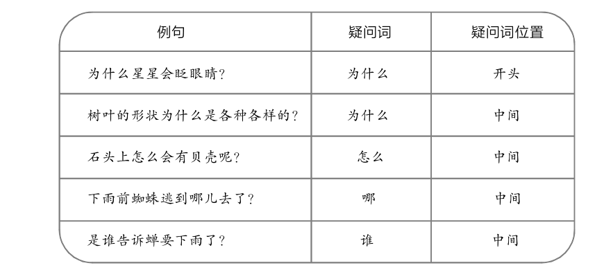 怎样将自己发现的、思考的问题写下来呢?参考例句,试着用不同的句式表达。