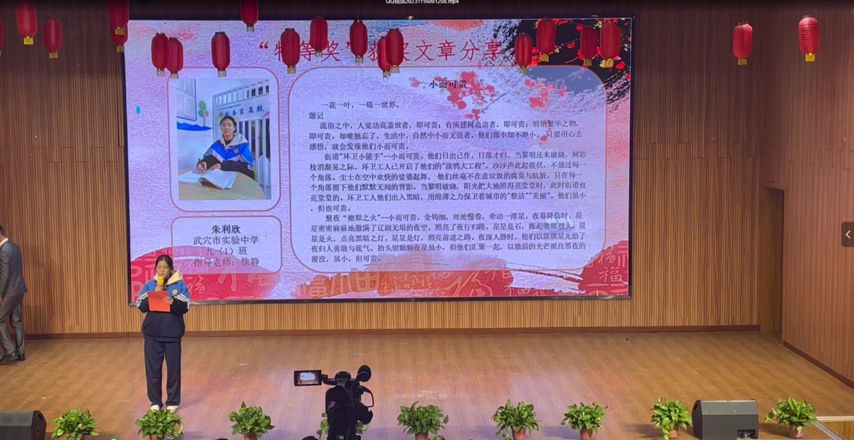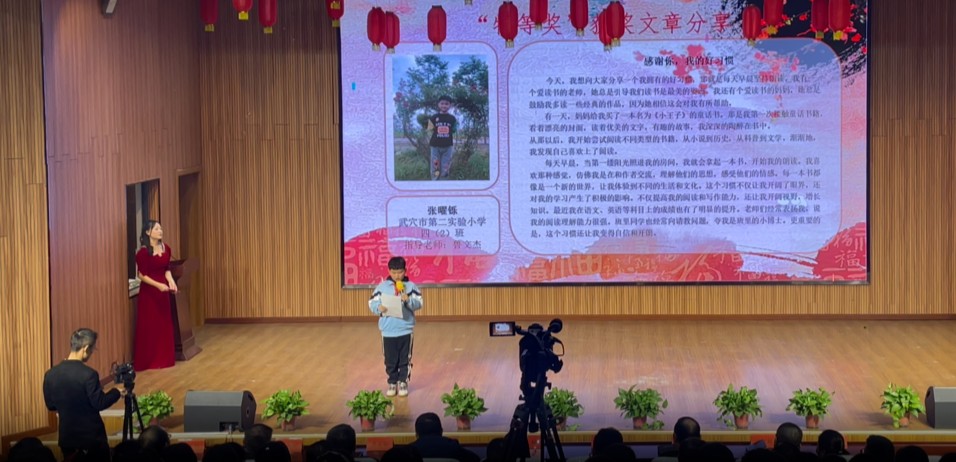 在颁奖活动上,来自武穴市第二实验小学四(2)班张曜铄、武穴市师范附属小学五(7)班朱鑫垚、武穴市实验中学九(1)班朱利欣、武穴中学高二(8)班宋芳等获得特等奖的同学分享了自己的获奖文章和学习心得。