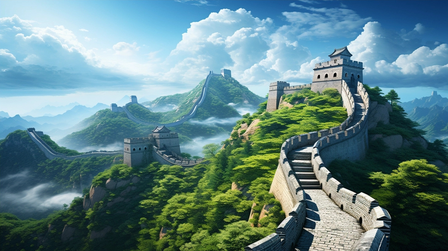 远看长城,它像一条长龙,在崇山峻岭之间蜿蜒盘旋。从东头的山海关到西头的嘉峪关,有一万三千多里。从北京出发,不过一百多里就来到长城脚下。这一段长城修筑在八达岭上,高大坚固,是用巨大的条石和城砖筑成的。城墙顶上铺着方砖,十分平整,像很宽的马路,五六匹马可以并行。城墙外沿有两米多高的成排的垛子,垛子上有方形的瞭望口和射口,供瞭望和射击用。城墙顶上,每隔三百多米就有一座方形的城台,是屯兵的堡垒。打仗的时候,城台之间可以互相呼应。站在长城上,踏着脚下的方砖,扶着墙上的条石,很自然地想起古代修筑长城的劳动人民来。单看这数不清的条石,一块有两三千斤重。那时候没有火车、汽车,没有起重机,就靠着无数的肩膀无数的手,一步一步地抬上这陡峭的山岭。多少劳动人民的血汗和智慧,才凝结成这前不见头、后不见尾的万里长城。这样气魄雄伟的工程,在世界历史上是一个伟大的奇迹。——选自人教版四年级上册