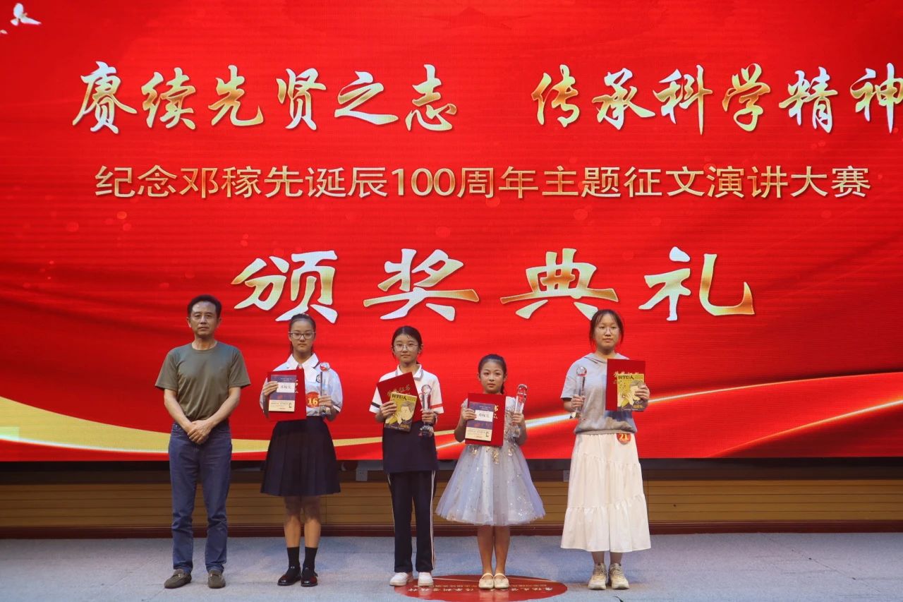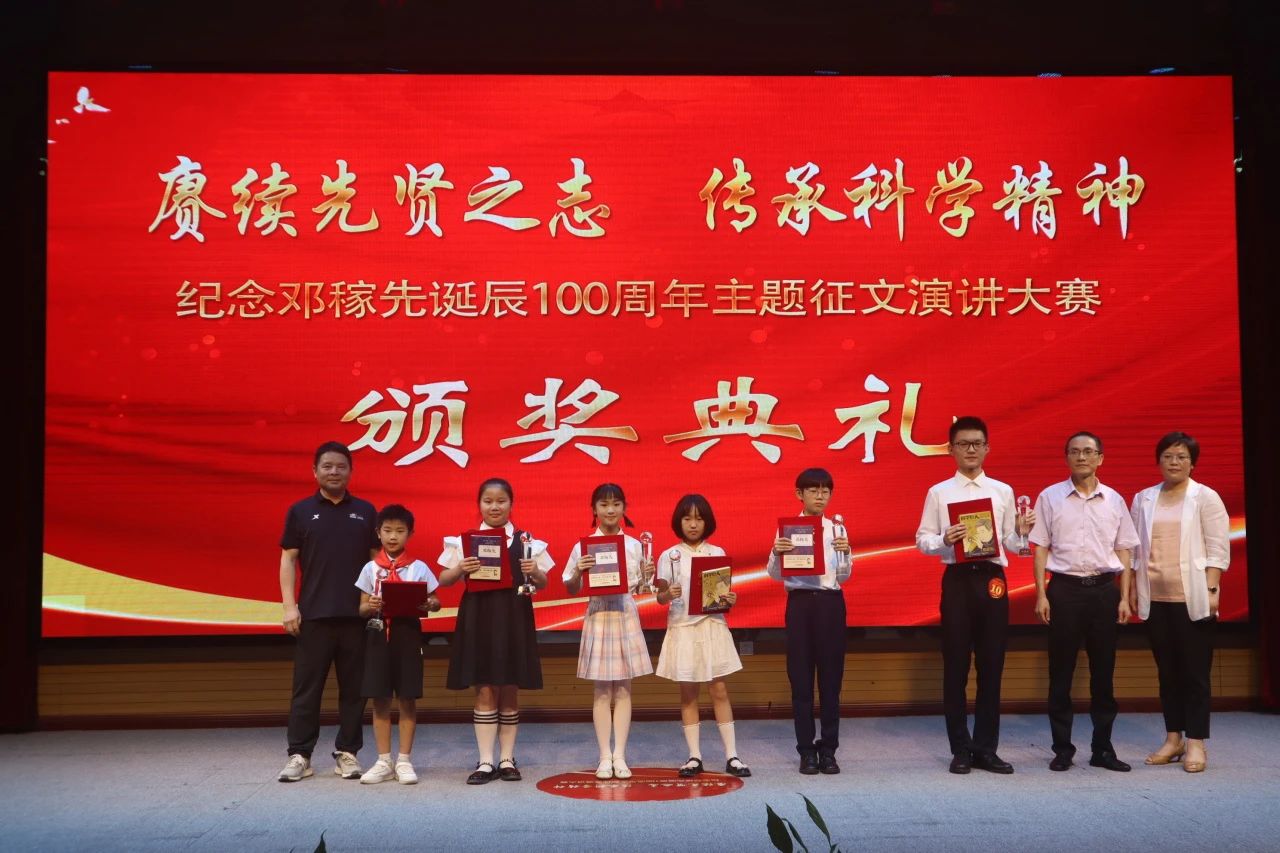 比赛结束后,举行了“纪念邓稼先诞辰100周年——赓续先贤之志,传承科学精神”主题征文、演讲大赛颁奖典礼。怀宁县关工委执行主任王学龙、怀宁县委宣传部副部长李治国、怀宁县关工委副主任汪华、怀宁县文化旅游体育局局长范红霞、团县委书记安奕、县文联主席钱续坤、县教育局副局长王根旺、县文化旅游体育局副局长曹羽、县科协副主席陈丙亮及具体承办单位、协办单位相关负责人为获奖选手颁发了荣誉证书、奖杯和奖品。