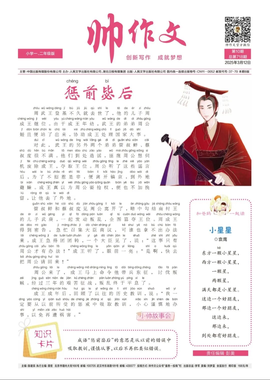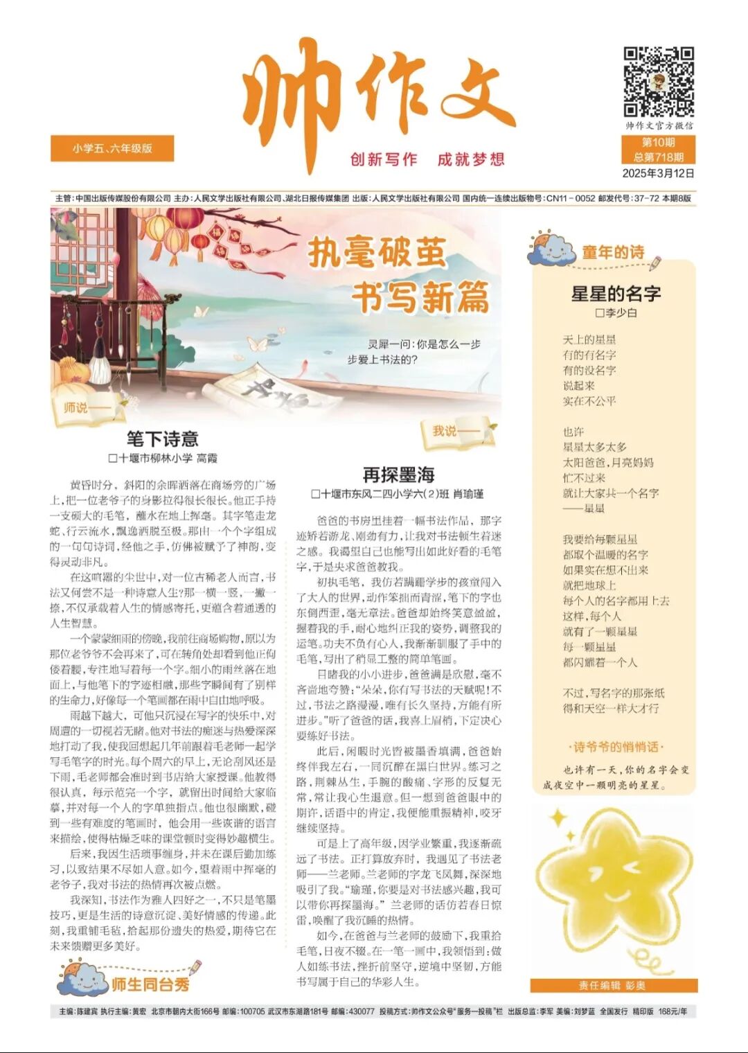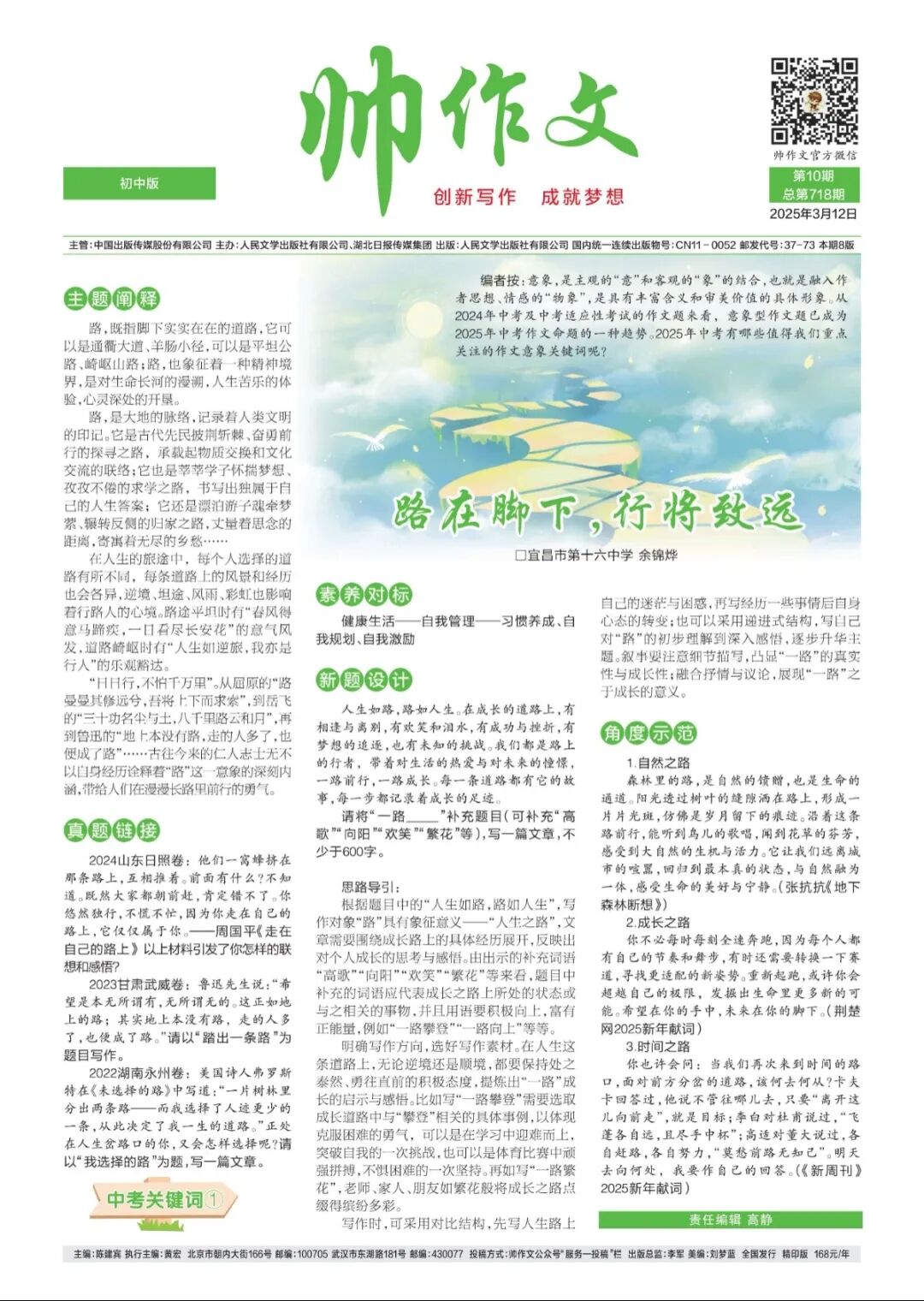①登录帅作文微信公众号,点击底栏“服务——投稿通道”进入投稿页面。 ②进入“点击投稿”,填写姓名、学校、年级、班级、联系电话、指导老师、作文标题、正文、评语等信息后,点击提交即可。 ③投稿成功后,编辑将会在三个月内进行审稿,若作品通过初选将会在“投稿精选”栏目中展示。(实际用稿另行通知) 投稿注意事项 1.投稿作品必须是原创作品。严禁抄袭,如有侵权,责任由投稿人自负。 2.编辑部只接受电子版形式投稿,投稿者提交作品时需实名投稿,写清楚班级、学校等信息。 3.作品一经采用,投稿者享有作品著作权和署名权,帅作文编辑部拥有作品的使用权和编辑出版权,以及在任何网络媒体宣传的权利。