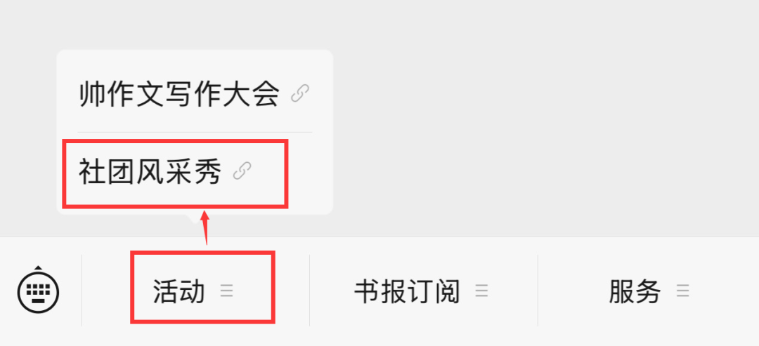 1.进入“帅作文”公众号,点击底栏“活动—社团风采秀”,进入活动投稿页面。