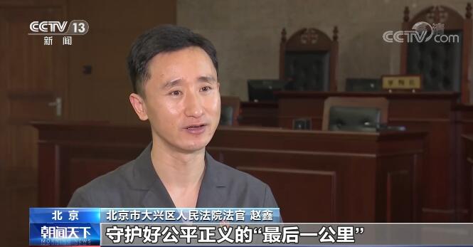 北京市大兴区人民法院法官赵鑫:作为一名年青(轻)的执行法官,我觉得就是要办好手中的每一起案件,能够懂得换位思考,与当事人能够共情,在遇到一些困难案件的时候,能够做到不放弃、不退缩,敢于亮剑,善用法律,守护好公平正义的“最后一公里”,努力让人民群众在每一个司法案件中感受到公平正义。