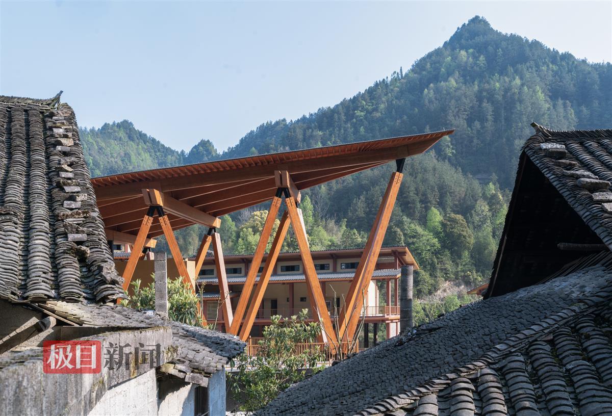 李保峰:最开始拿出这个方案的时候,我也有点发怵(笑)。从理论上来说,在一个自然环境中确实不要搞得这么“嚣张”。但是摩霄楼这样设计,是基于更多层面的考虑。首先,它不是单独存在的,它是中国土家泛博物馆的一部分,这个项目由几十栋房子共同组成,绝大多数建筑都遵循着与环境相融原则,紧紧跟随山势走。在这样一个山谷里,如果没有一个显眼的建筑,视觉上没有锚点,人会失去方向感,因此它是一个山谷中的空间定位;其次,这个项目存在的基础是彭家寨,这个寨子是全国重点文物保护单位,这么好的文化资源,沉淀了先人的智慧,它需要一个俯瞰视角,让人能够更好地去理解村寨的空间布局以及其中的美妙之处,这种整体结构上的美感在平地上是看不到的,从空中给出一个视角就非常重要。