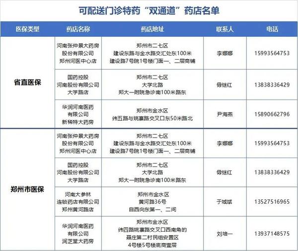 大河网讯10月27日,记者从河南省市医保中心获悉,疫情期间,为保障省直医保及郑州市参保人员门诊特用药需求,公布一批可配送门诊特药“双通道”药店名单。参保人可在“双通道”药店自费购药,后期按要求至医保中心手工报销。