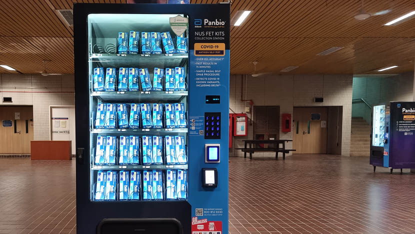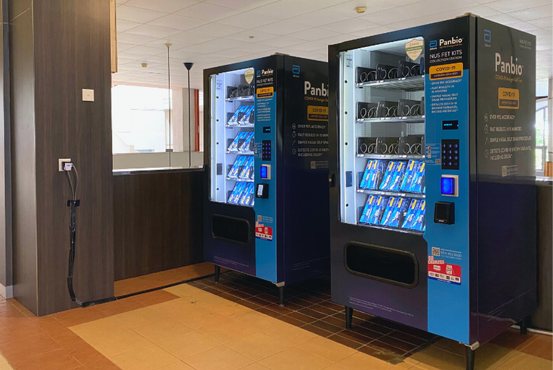 新加坡国立大学里设置的自测盒设备。受访者供图