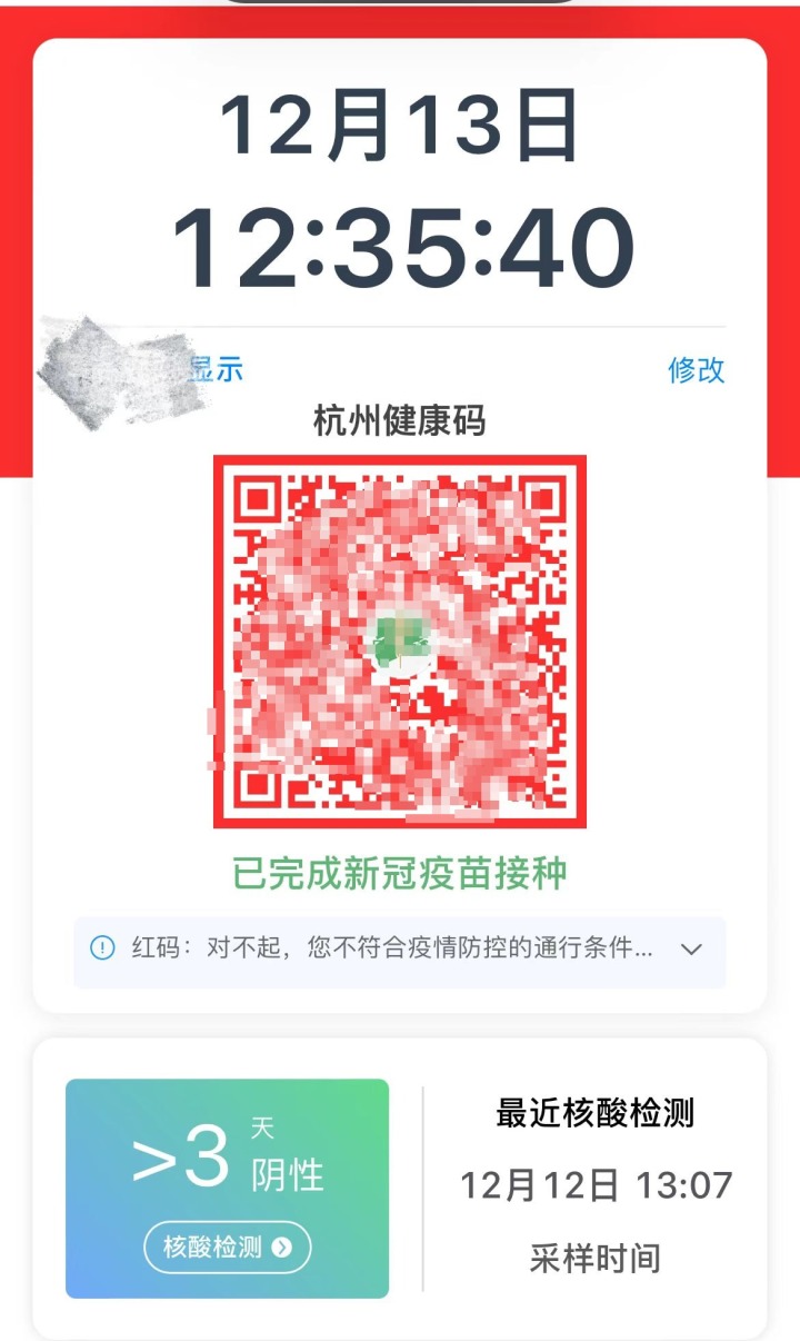 健康码呈红色。