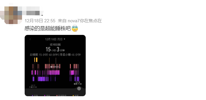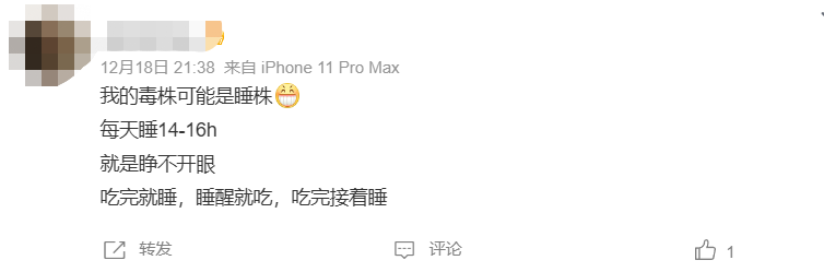 还有网友怀疑自己感染的是“睡株”,主要症状为巨困无比,并晒出了自己的睡眠记录,一天的睡眠时间在14-16个小时左右。