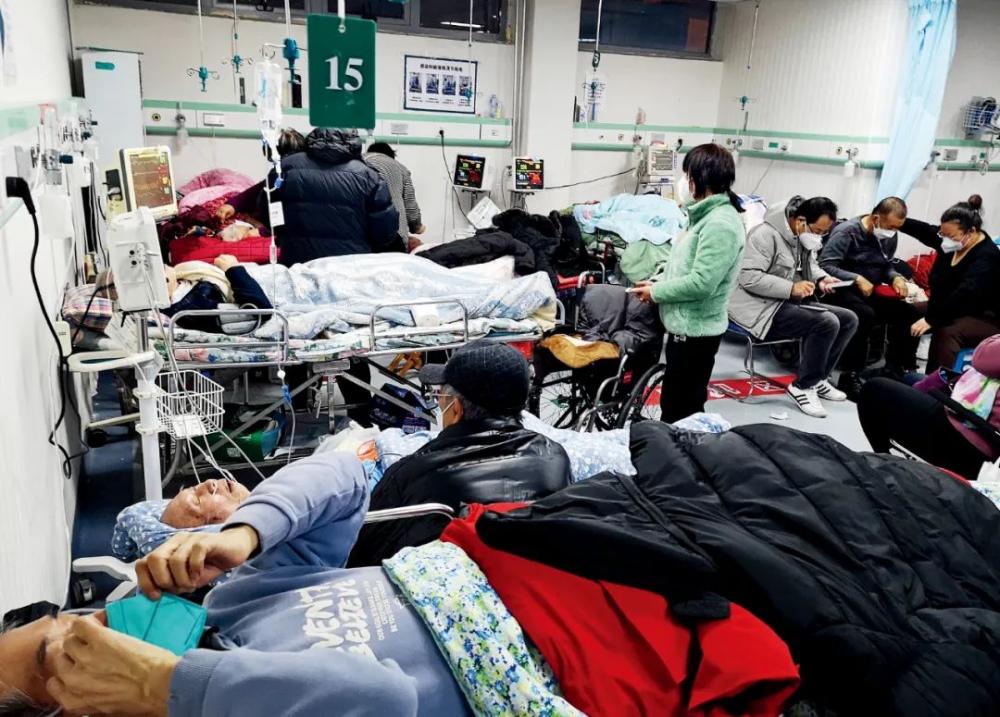 2022年12月25日,北京通州区潞河医院发热门诊人满为患,走廊里、待诊区、监护区、留观区,各个角落都是前来就诊的老人和家属。图/新华