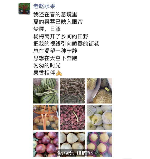 去年夏天老赵“火了”,多家媒体都在转载他的诗,现在大家都叫他“水果诗人”。