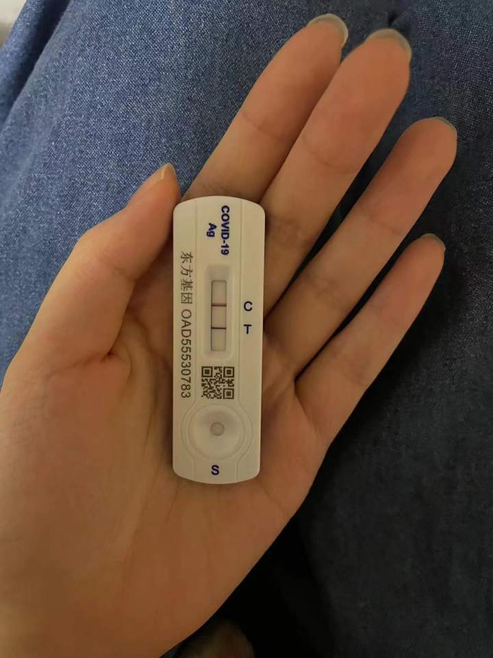 第一次感染是在去年4月初,当时我们小区正封闭式管理,我和三个室友合租在一百多平方米的房子里,冰箱和厨房都是共用的。4月8日,我的室友阳了,但她基本没什么症状。4月9日,我发烧了。当天抗原没测出来,后来做了单管核酸,检测结果,我阳了。