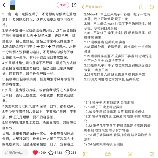 我还在小红书上分享了我两次阳了的经验,并记录下我两次阳了后的症状,希望大数据能推给更多需要的朋友。我认为平时大家还是要注意防护,阳上了就要及时预防,该吃药吃药,该泡脚泡脚,不能摆烂。还有,心态要平和,不能焦虑,焦虑会失眠,失眠就调养不好身体。