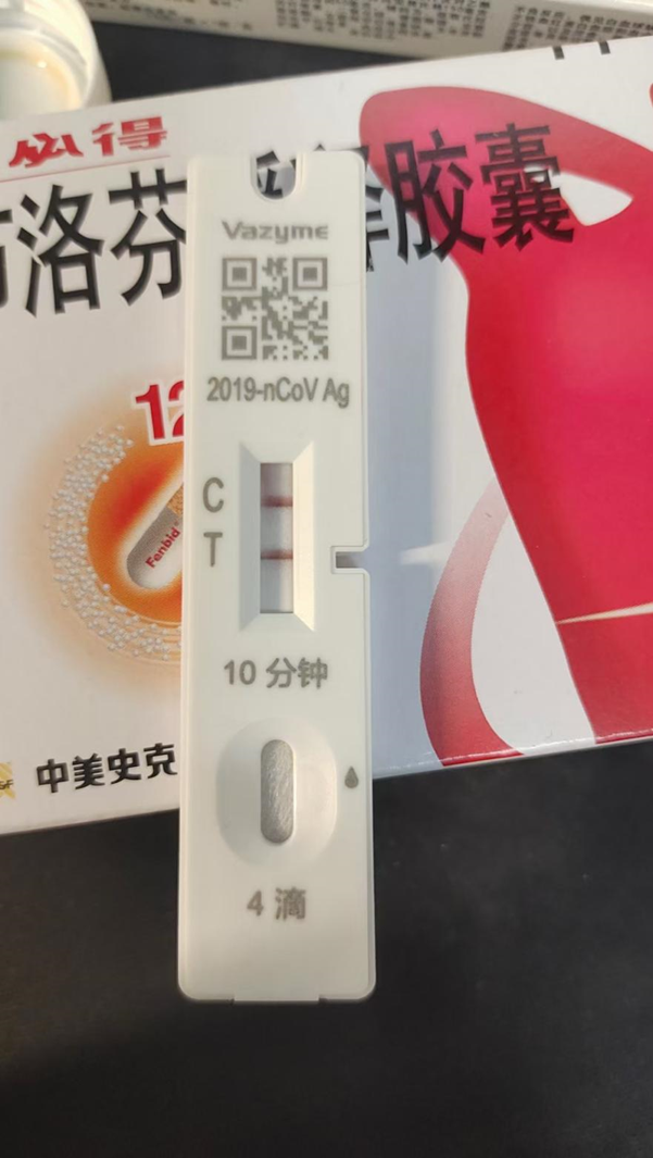 2022年4月10日,甜甜做的抗原自测结果显示阳性