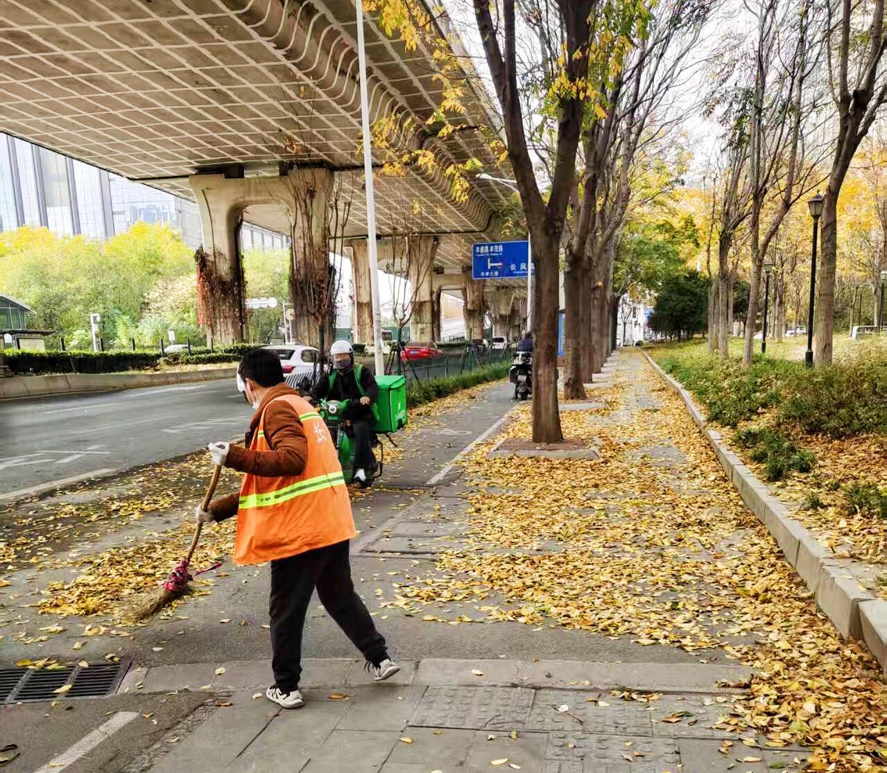 硚口环卫工人采用人机结合方式清扫街头落叶极目新闻 昨日 -