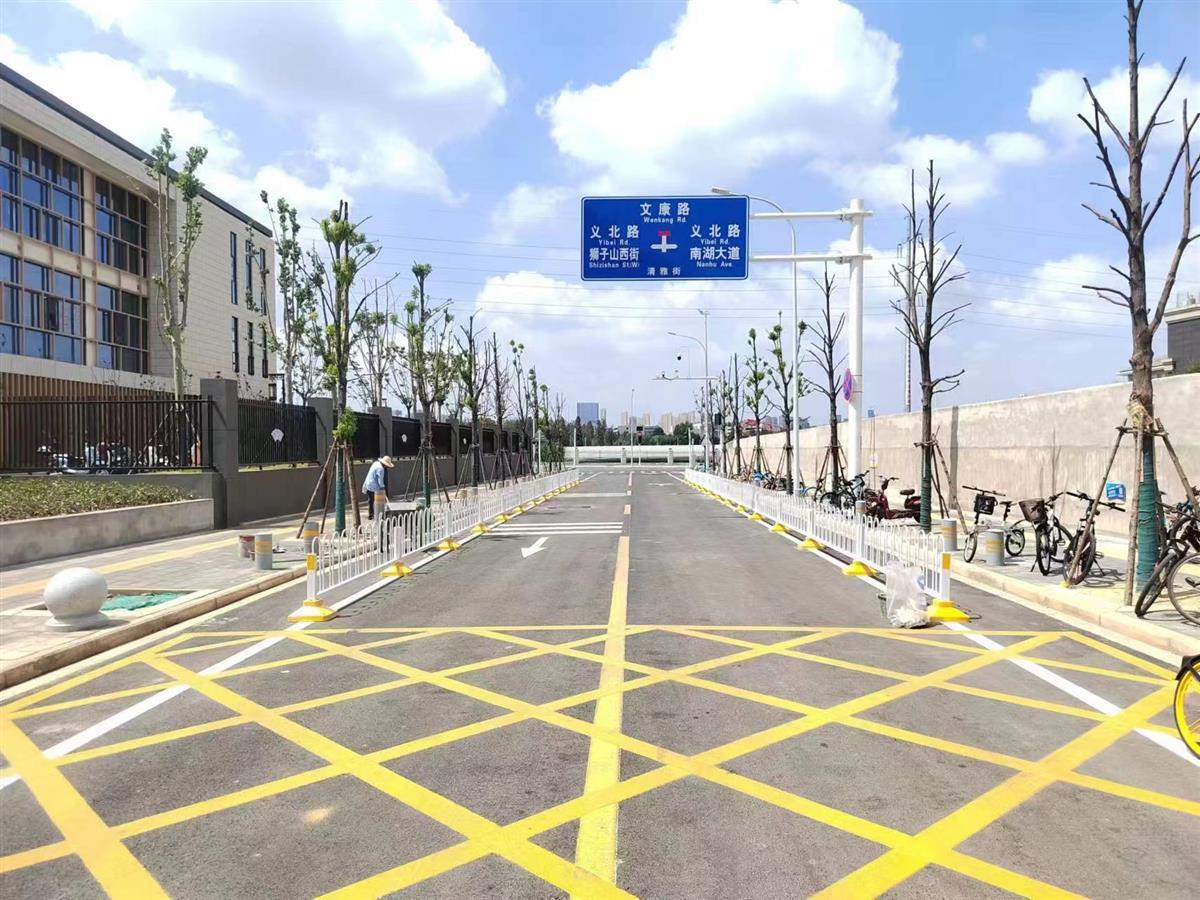 9月13日早晨,在新建成的洪山区第六小学校门前,隔离护栏、非机动车道指示线、黄色禁停网格线、震荡减速带、行人过街警示牌等安全设施一应俱全。校长程祥斌介绍,早期道路规划设计并未考虑到洪山六小门前交通配套设施,门前清雅街人车混行,高峰期校园门前拥挤不堪。洪山交通大队规划专班民警积极协调区建设局、设计院和道路施工方,在道路正式建成通车前,重新细化完善了疏导方案,同时指导施工单位将交通安全设施纳入到道路交通工程预算内予以同步设计、建设。