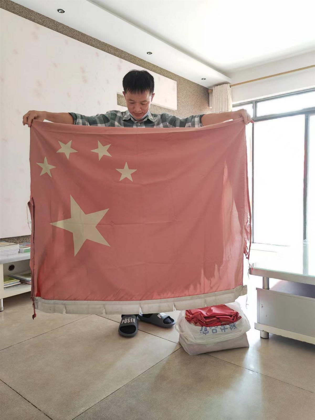 张潮随后向记者展示了部分保存的旧国旗。“最开始的时候,我将换下来的旧国旗处理掉了。可后来觉得不妥,便将它们全部洗净晾干后保存下来了。”张潮边说边指了指家中阳台上挂着的五六面旧国旗,“这些是最近才更换回收的国旗,等晾干后就一起收好。”
