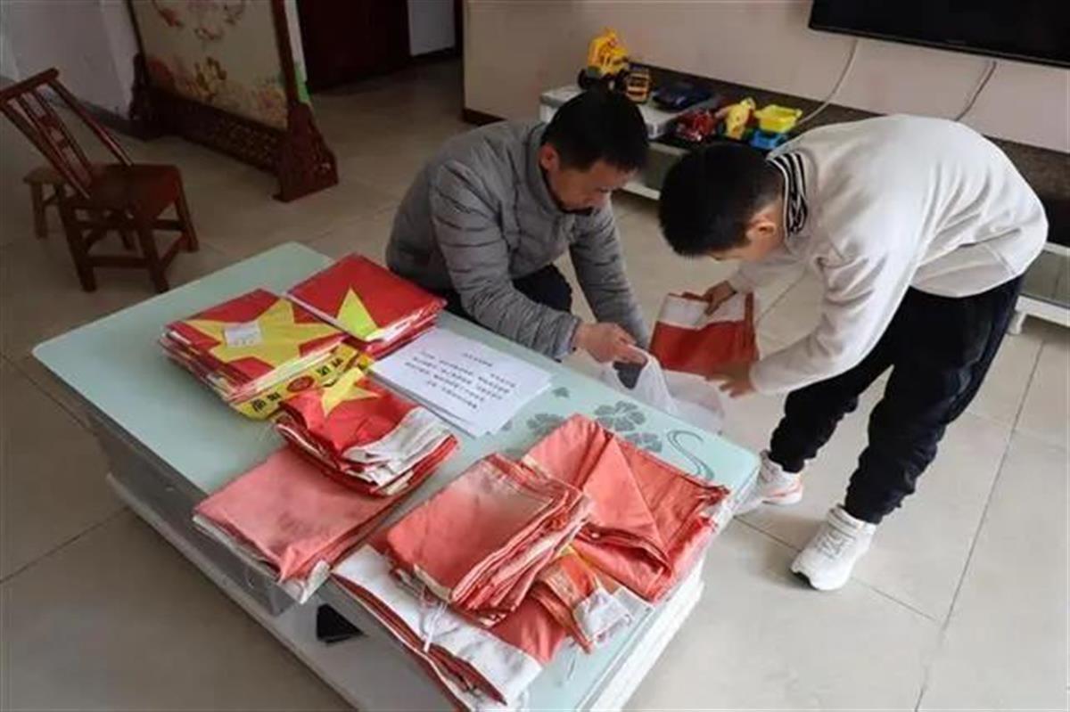 据张潮介绍,今天还在上学的儿子张博涵,是在自己的带领下,于2020年夏天开始和自己走街串巷,寻找老旧国旗进行更换的。他说,儿子在坚持更换了一段时间后,其事迹被学校知道了,儿子的一些好朋友也会时不时地跟他们一起上街更换国旗,这让他觉得自己做的事情更有意义了。